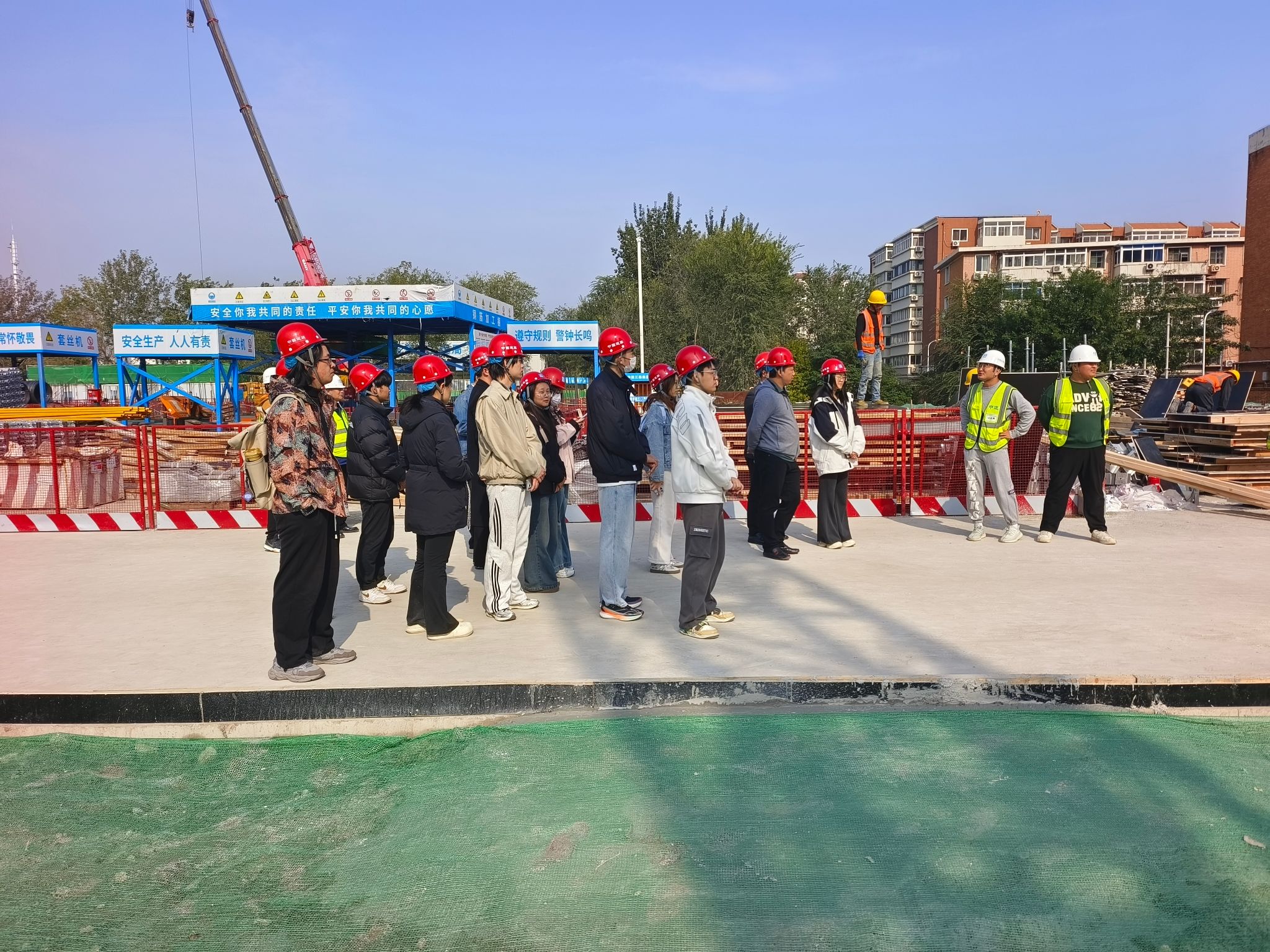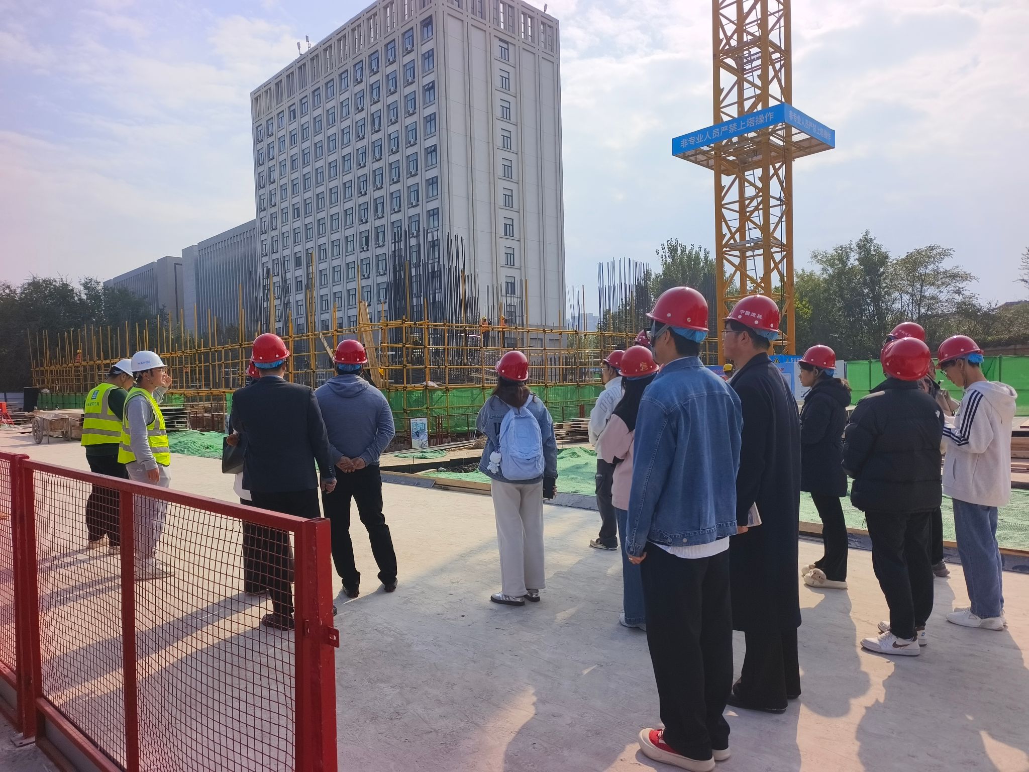 活动前期,基建处与校团委多次联动沟通,精心设计“安全+专业”双轨流程:工作人员首先系统讲解安全帽佩戴规范、施工现场风险点等知识,为学生安全参与筑牢防线。进入工地后,项目工程师与基建处老师组成“讲解团”,沿着施工动线,从项目概况、钢筋捆扎工艺,到宿舍户型布局、取暖隔音材料选型,再到独立卫浴配置、公共空间规划,逐一进行专业讲解。面对学生提出的细节问题,工作人员现场解答,将抽象的建筑术语转化为贴近生活的“居住指南”,让学生在专业认知中感受育人关怀。