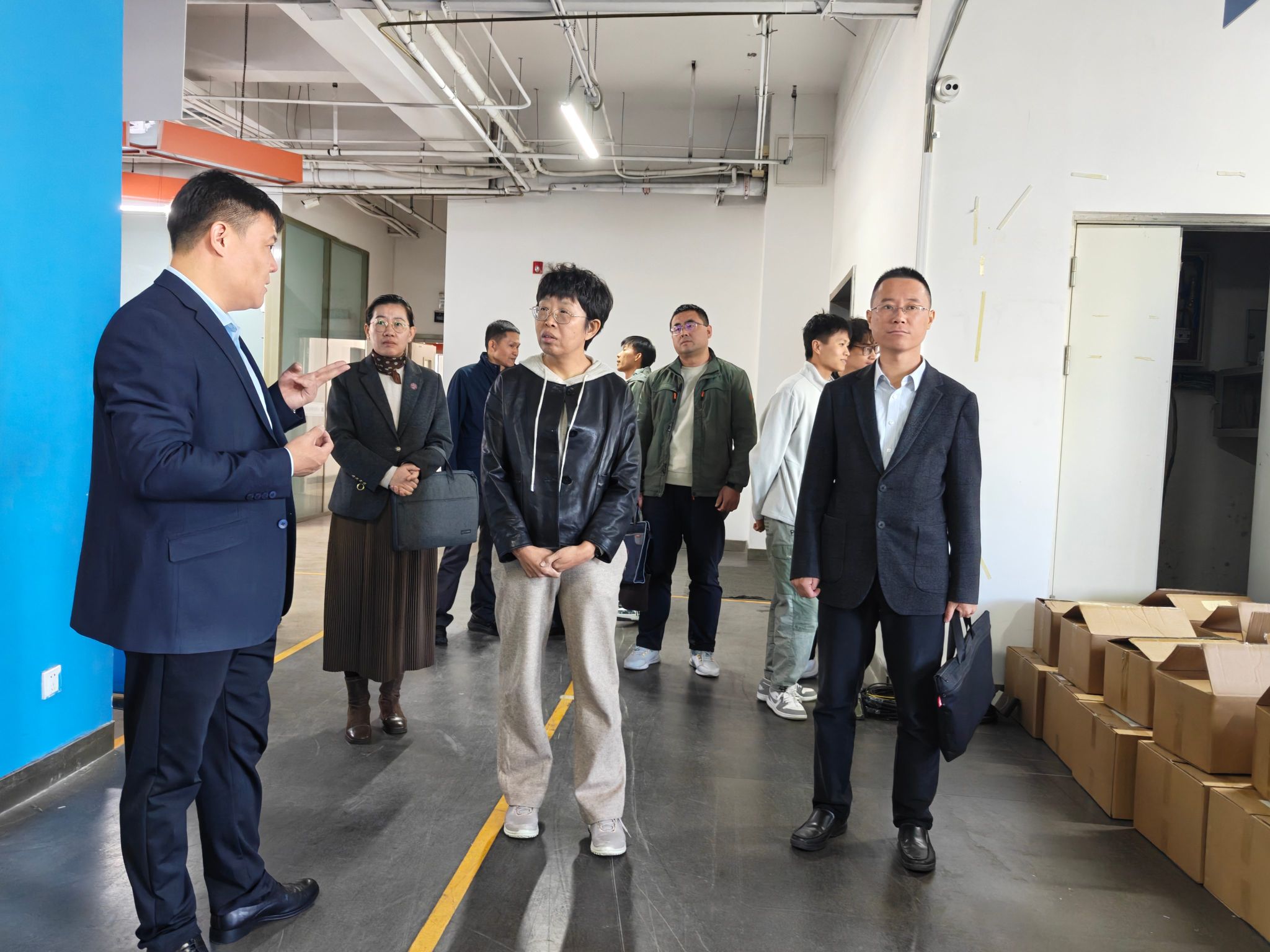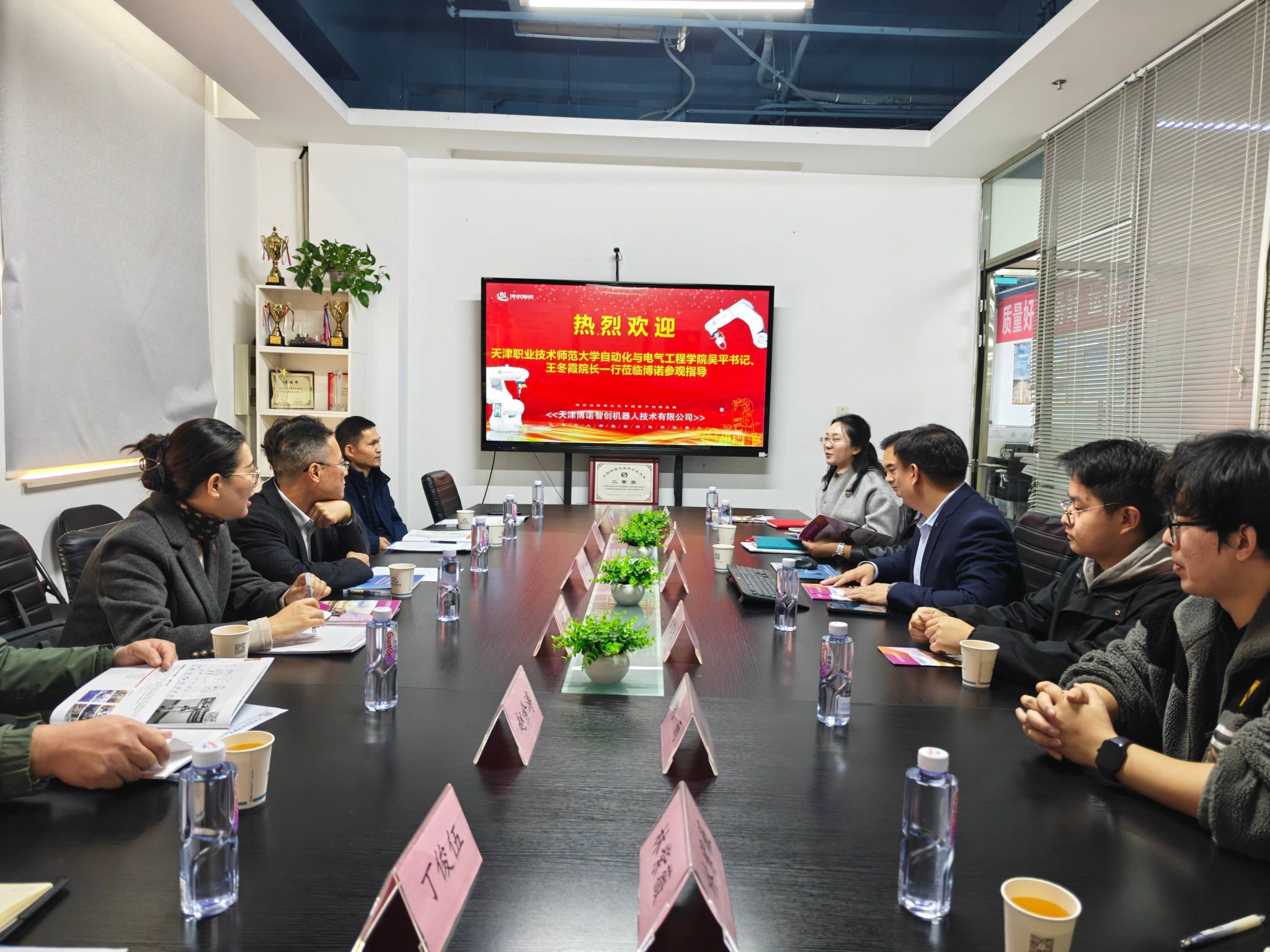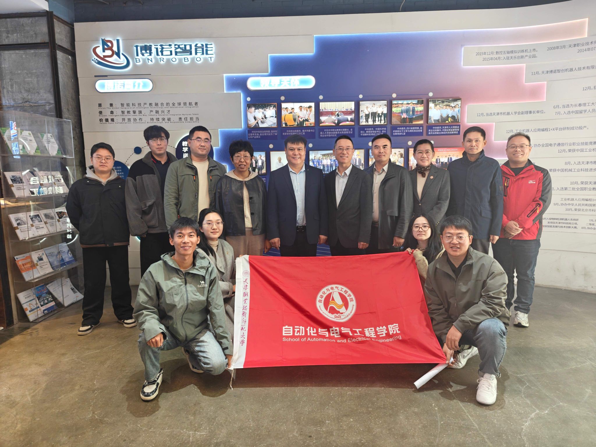 本网讯【通讯员 丁俊伍 王珊】为深入贯彻落实党中央、国务院关于高校毕业生就业工作的决策部署,深化校企合作,拓宽就业渠道,助力2026届毕业生更充分更高质量就业,10月21日,自动化与电气工程学院党委书记吴平、院长王冬霞、党委副书记程君、实验实训中心主任胡山、教师代表赵金涛、学院辅导员丁俊伍及2026届毕业生代表前往天津博诺智创机器人技术有限公司开展访企拓岗。