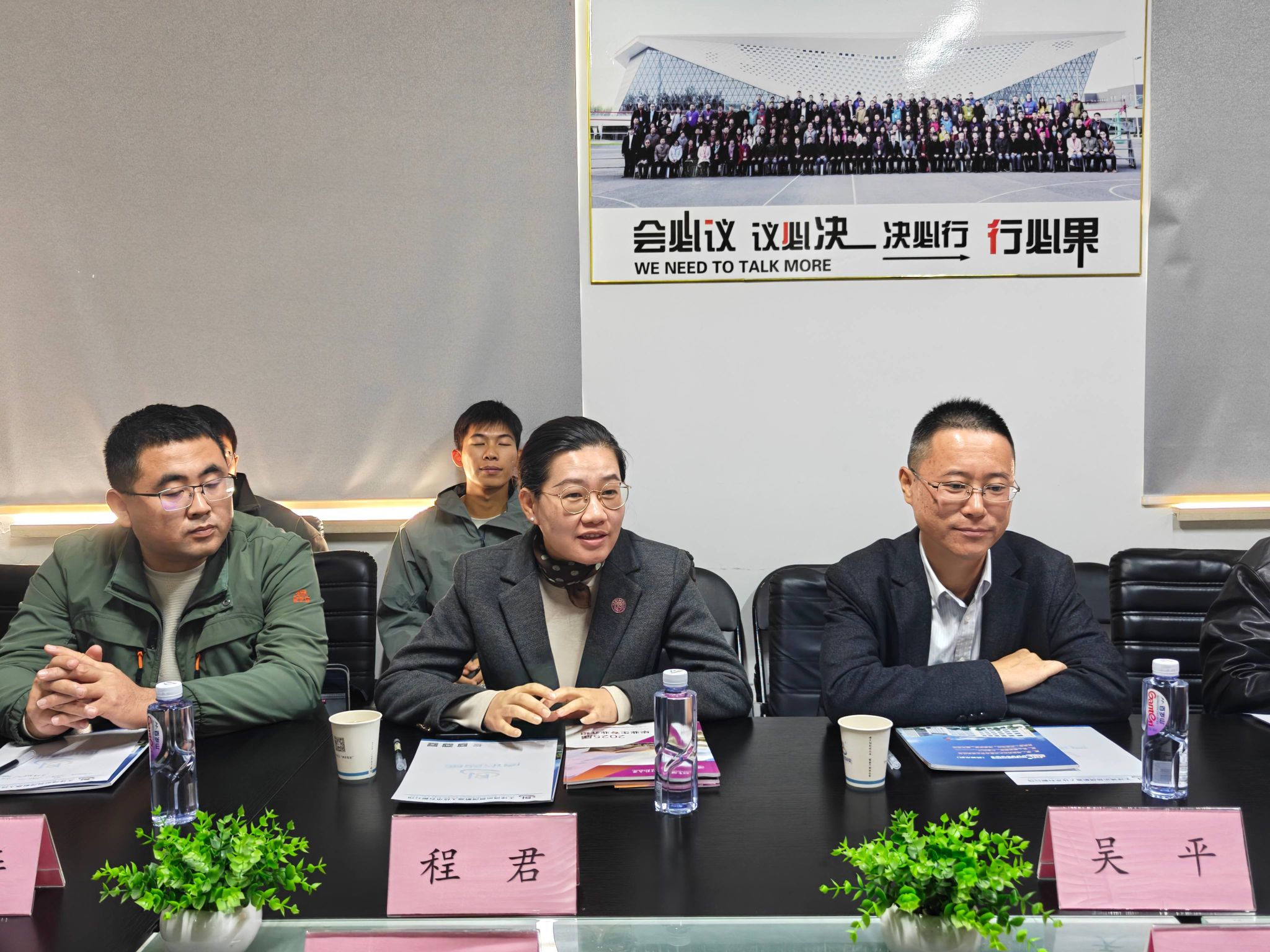 随后,双方就深化校企合作开展座谈交流。吴平介绍学院总体发展情况、人才培养特色与毕业生资源,并对校友企业取得的辉煌业绩表示祝贺,对其长期以来关心支持学院发展表示感谢。王冬霞重点介绍了学院的科研优势、学科建设进展以及未来重点发展方向,希望双方能在科研项目联合攻关、技术协同创新等方面找到更多契合点。程君详细介绍了学院近年来的就业工作情况、毕业生特点及2026届毕业生情况,希望以此次走访为契机,搭建更畅通的选才育才渠道。