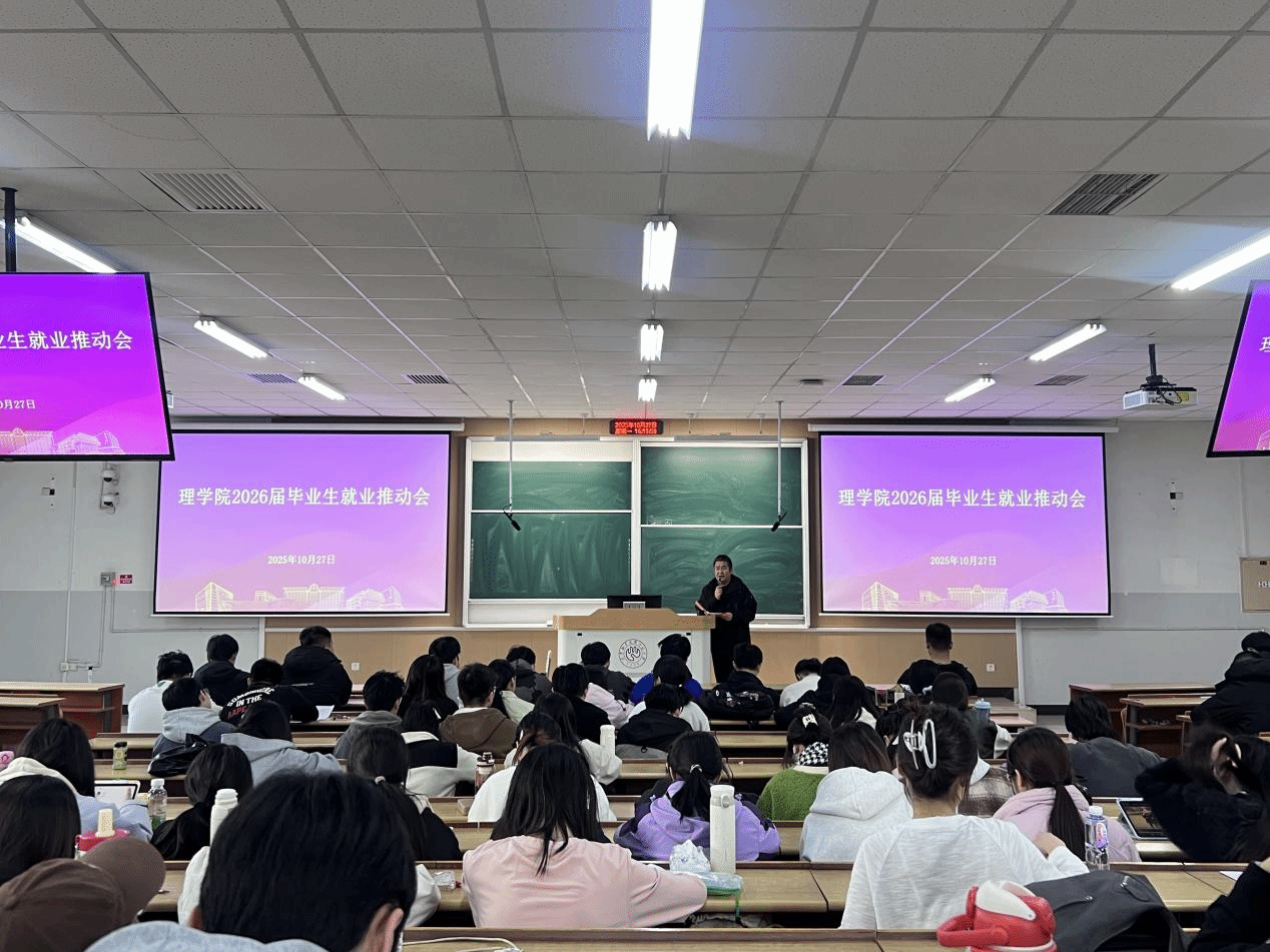本网讯【通讯员 李家鹏】10月27日下午,理学院在第三教学楼108教室面向2026届全体毕业生召开就业动员会。学院党委副书记戚霄、毕业班辅导员和班主任及全体2026届毕业生共同参加,旨在抢抓秋季校园招聘黄金期,帮助毕业生精准把握当前就业形势,明确求职目标。
