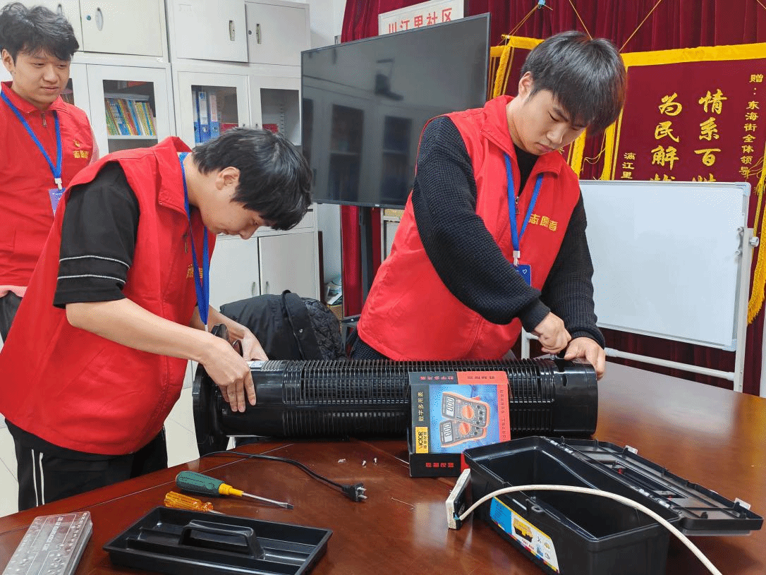 本网讯【通讯员 任畅 刘娜娜】11月4日,机械工程学院青年志愿者协会和科技创新协会的学生走进川江里社区,开展了一场以“技能帮扶进社区,爱心服务暖邻里”为主题的小家电维修志愿服务活动。此次活动将学生的专业实践与社会服务相结合,赢得了社区居民的广泛赞誉。