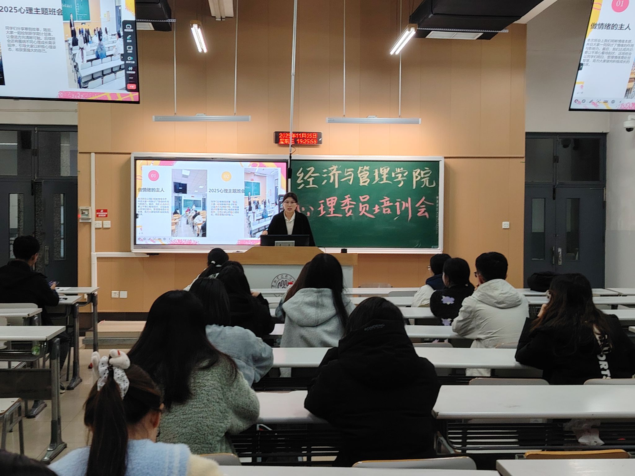 本网讯【通讯员 刘欣宇】为进一步夯实学院心理健康教育工作基础,提升心理委员的专业素养与履职能力,筑牢学生心理健康安全防线,11月5日,经济与管理学院举办心理委员工作培训暨心理“达标”“示范”班建设经验交流会。2025级全体新生心理委员及高年级心理委员代表参会。