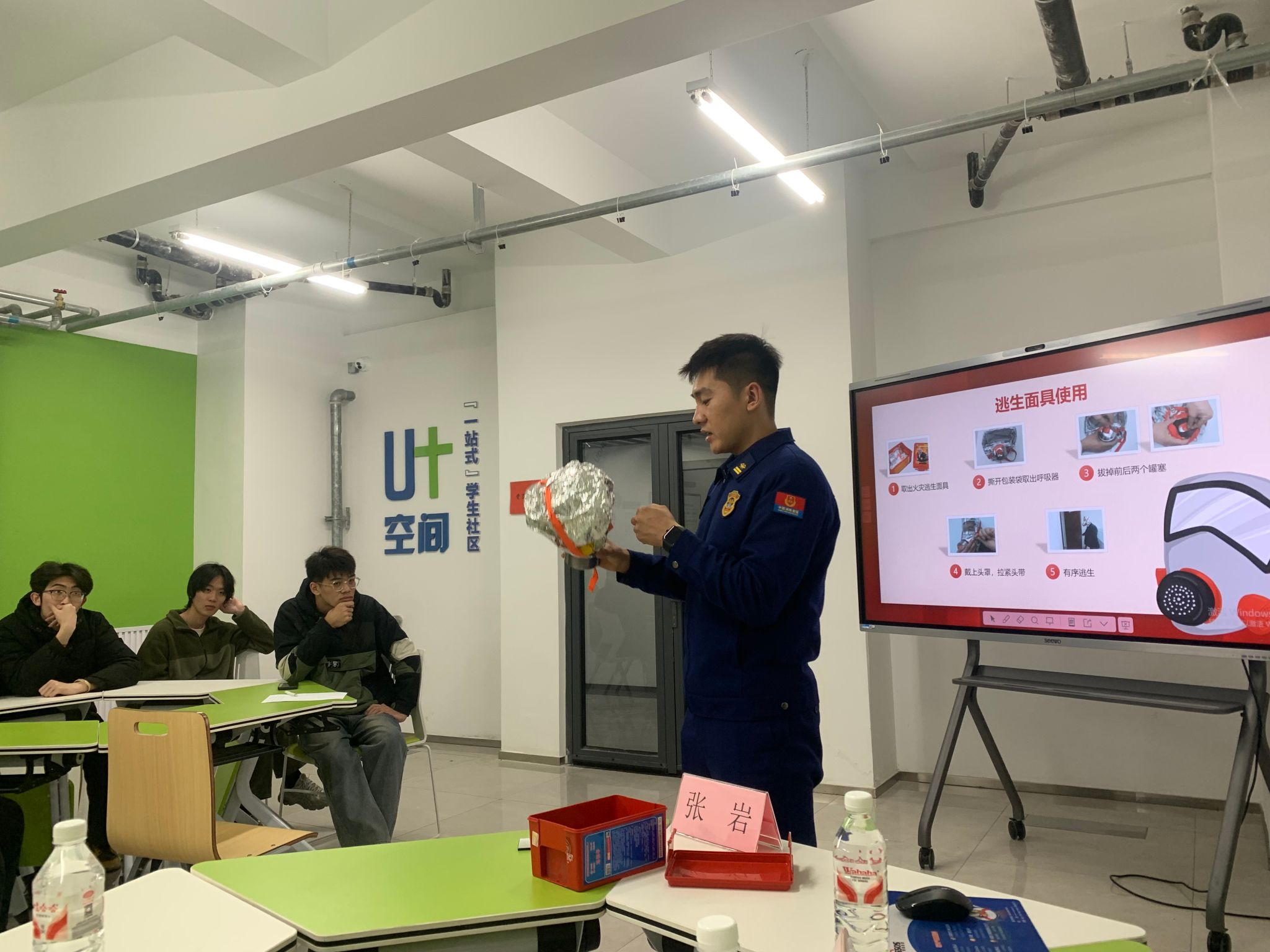 本网讯【通讯员 胡杰】为进一步增强学生消防安全意识,提升应急处置能力,11月10日下午,机械工程学院联合天津市微山路特勤消防队,在一站式学生社区U+空间开展“火焰蓝走进社区 安全教育在身边”主题活动。活动特邀消防队分队长张岩担任主讲,通过案例讲解、实操演示和互动体验等形式,为同学们带来一堂生动的安全教育课。