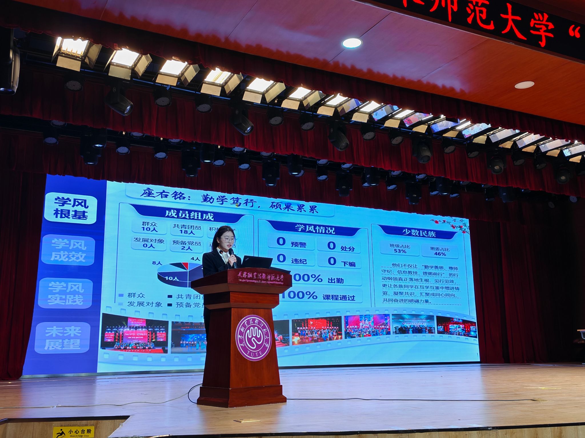 本次活动自今年2月启动以来,围绕“树典型、立标杆、促学风”的核心目标,历经班级创建、学院推荐、材料审核等环节,最终从全校本科生班级中推选出40个“优良学风班”。16个班级作为代表进行了现场展示。