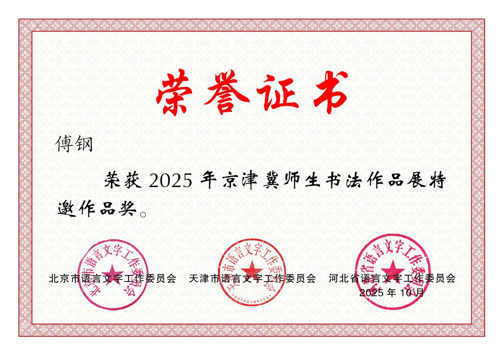 此次获奖,不仅是对傅钢老师个人艺术造诣的肯定,也彰显了我校在弘扬中华优秀传统文化、推动语言文字与美育教育融合发展方面的积极成效。学校将继续鼓励师生参与高水平的专业交流与展示活动,为京津冀教育文化协同发展贡献力量。