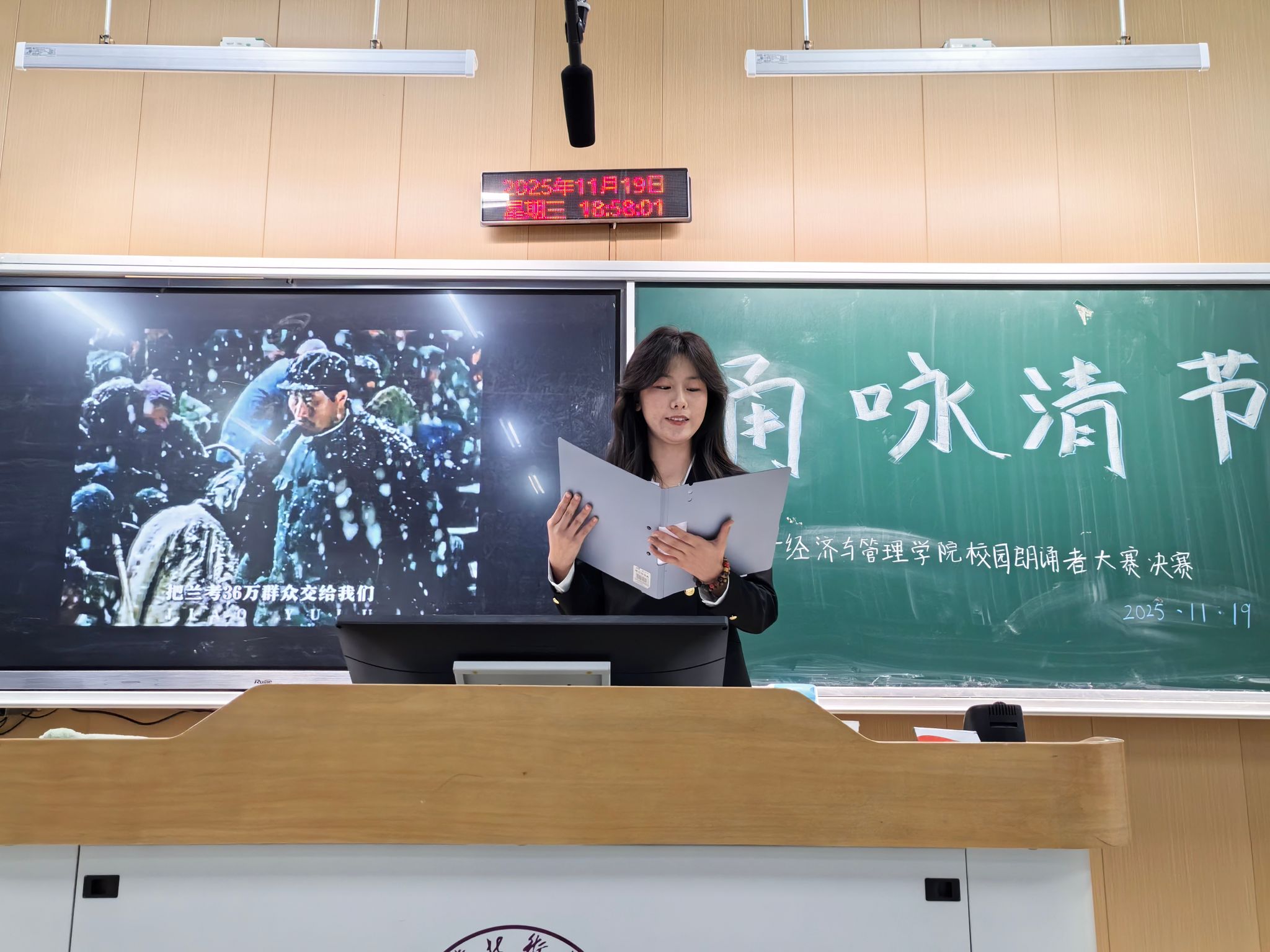 此次“诵咏清节 逐光韶华”朗诵比赛,既是经济与管理学院丰富校园文化生活、展示学子风采的重要平台,也是学院深化廉洁教育、推进学风建设的创新实践。学院将以此次活动为纽带,持续开展各类廉洁文化主题活动,让廉洁之风浸润校园,让青春韶华在清风正气中绽放光彩,为培养德才兼备、清正廉洁的新时代青年营造良好的育人环境。