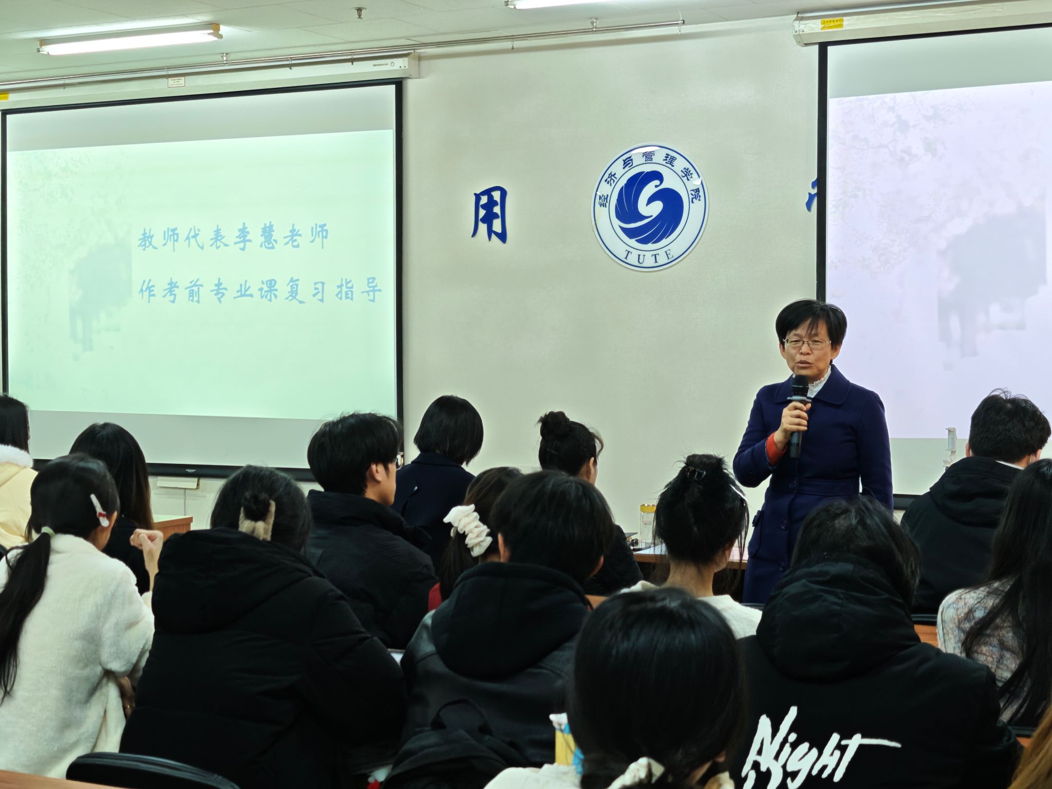 成功指导多名毕业生上岸的教师代表李慧结合多年教学经验,为学生进行考前专业课复习指导。她从考点分析、难点梳理、答题技巧等多个维度,为同学们最后阶段的复习“精准把脉”,勉励大家回归基础、查漏补缺,构建完整的知识体系,以沉稳自信的心态迎接挑战。