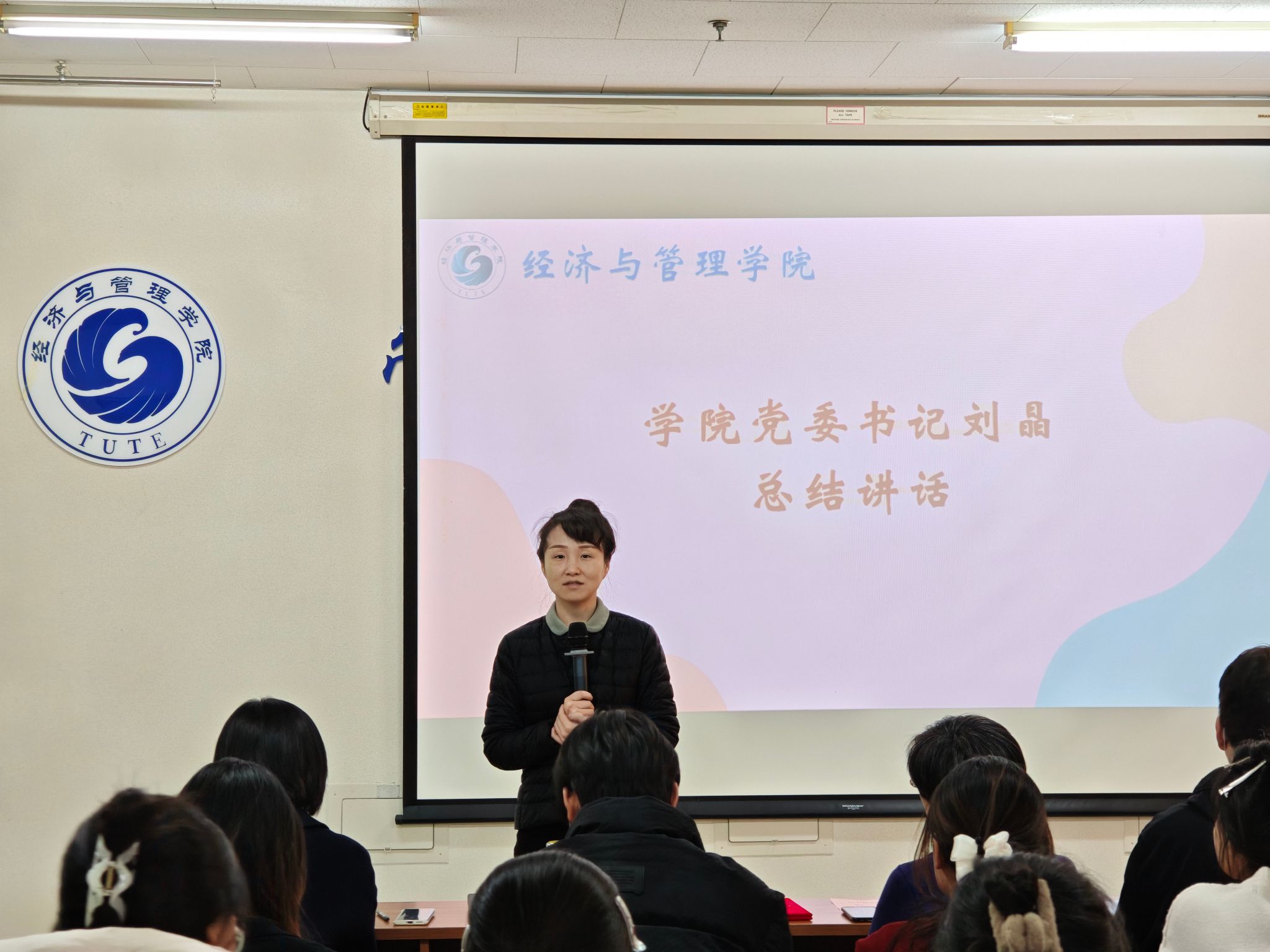 会议最后,学院党委书记刘晶作总结讲话。她表示,学院一直关心考研学生的动态,竭尽全力为同学们提供帮助。她向全体考研学子提出三点希望:一是要坚定信念,保持“锚定目标,笃行不怠”的执着;二是要讲究策略,做到科学高效备考;三是要调整心态,以最佳状态迎接考试。她强调,学院永远是同学们最坚强的后盾,期待大家在明年春天传来捷报。