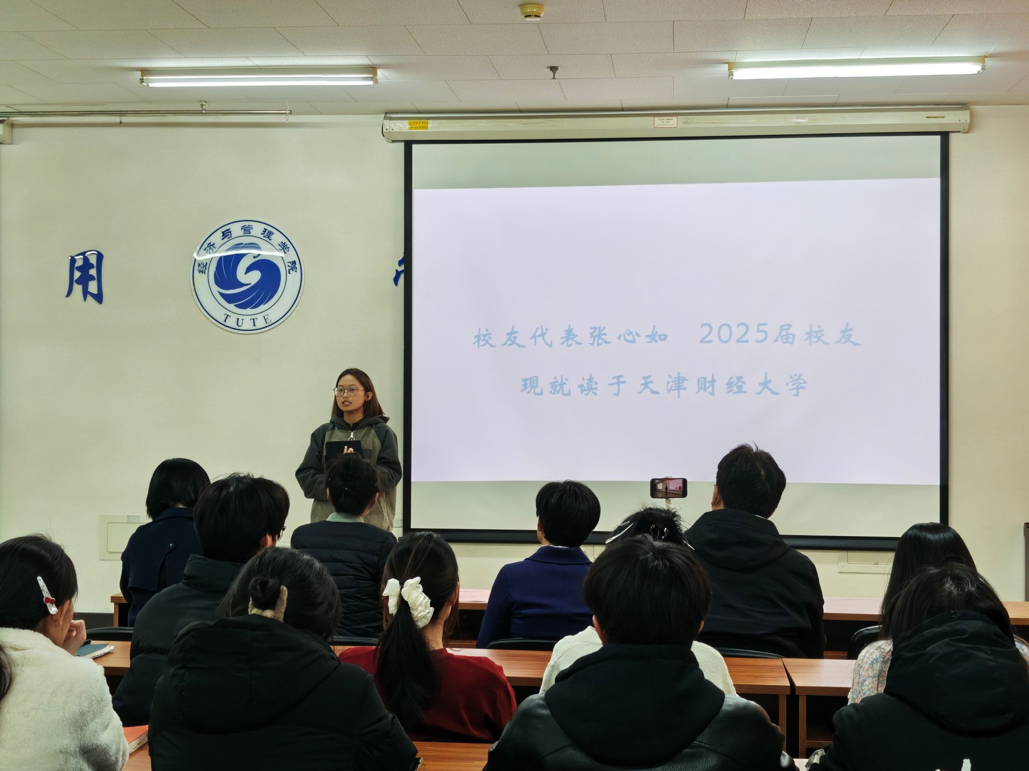 考研升学优秀校友代表贾雯斐、张心如结合自身的考研经历,分享了宝贵的实战经验。她们从时间管理、心态调整、模拟考试、信息搜集等方面倾囊相授,用“过来人”的视角为学弟学妹们答疑解惑,鼓励大家在最后的关头要坚持不懈,相信“星光不负赶路人”。学院2025级研究生蔡芷悦作为在校生代表发言,分享了她的考研“小妙招”,表达了对学弟学妹们的深切理解与支持,并代表全体研究生帮扶志愿者作出表态,承诺将尽己所能,提供最及时、最有效的学业辅导与精神陪伴,助力考研学子成功上岸。