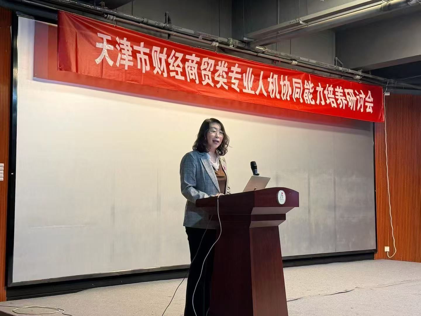 本网讯【通讯员 郎宇彤 李彤】为推动“人工智能+教育”与财经商贸类专业的创新融合,由我校主办、中教畅享科技股份有限公司承办的2025年财经商贸类专业人机协同能力培养研讨会于11月22日在教学主楼9楼小礼堂顺利召开。经济与管理学院党委书记刘晶、院长齐莉丽、中教畅享科技股份有限公司副总经理潘洪锋,以及来自京津冀等地近百名中高职及本科院校财经商贸类专业领域的骨干教师参加会议,共同探讨人工智能赋能专业建设的新路径。