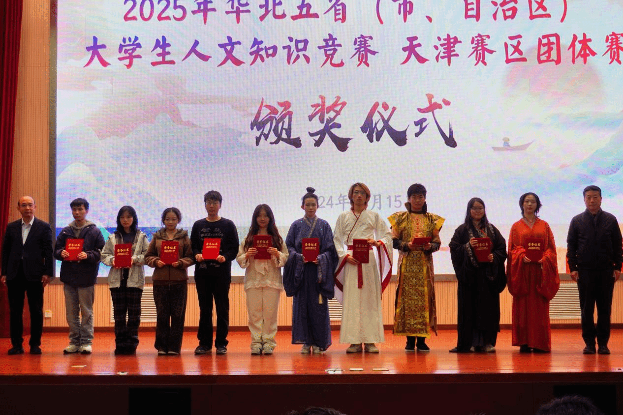 本网讯【通讯员 张博】日前,以“观乎人文,化成天下”为主题的华北五省(市、自治区)大学生人文知识竞赛天津赛区决赛落下帷幕。比赛分为团队赛和个人赛,我校外国语学院汉教2201班学生亓嘉铭、汤烜杰,汉教2301班学生温庭玮、赵雨琳,信息技术工程学院计科2311班学生王小岚,在外国语学院教师张博指导下,以总分127.6分的优异成绩斩获季军,荣获团体二等奖1项,汉教2201班学生汤烜杰凭借出色表现荣获个人赛三等奖,创造了我校在该赛事团队赛中的历史最好成绩。