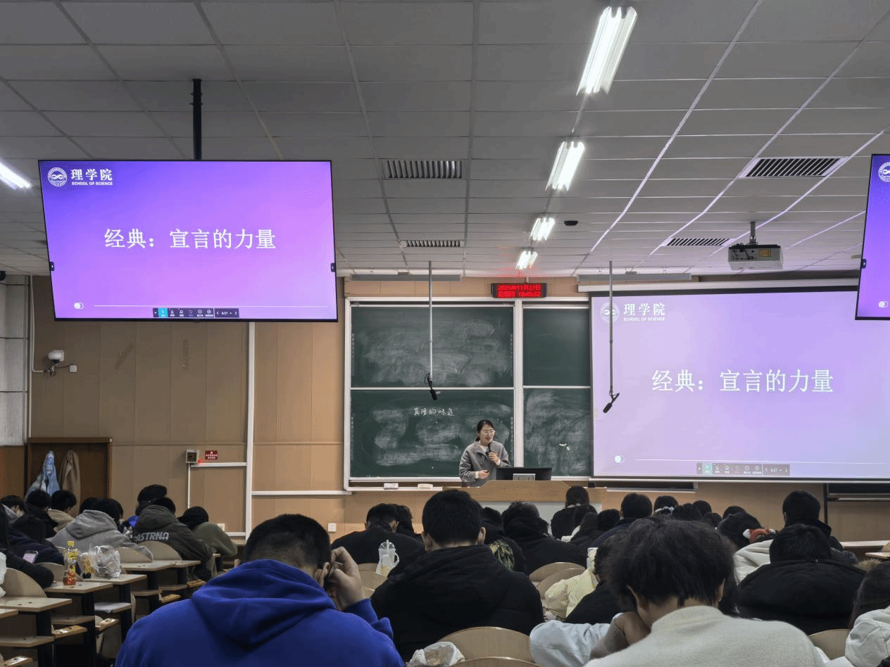 讲座尾声,全体同学在刘欢老师带领下,齐声朗读马克思17岁时写下的职业选择誓言:“如果我们选择了最能为人类福利而劳动的职业……”这一刻,百年前青年人的理想与当代大学生的追求产生了强烈共鸣。