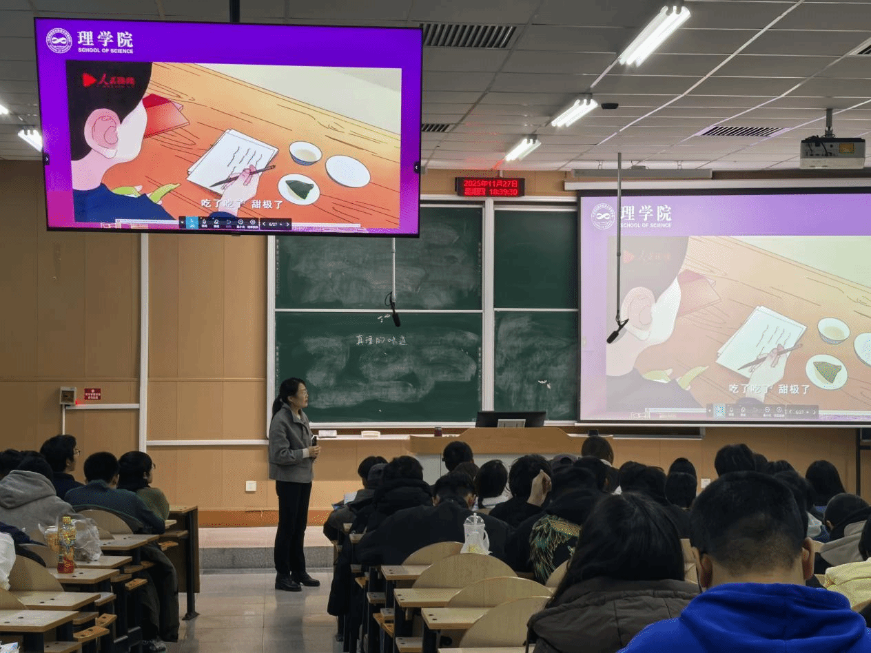 本网讯【通讯员 张轶硕】11月28日晚,由理学院主办的“真理的足迹”系列思政讲座首讲在阶教103教室正式开讲。马克思主义学院刘欢老师应邀为理学院全体大一新生讲授题为《真理的味道》的专题讲座,通过生动讲述和互动体验,引导理科新生感悟真理力量,筑牢信仰根基。