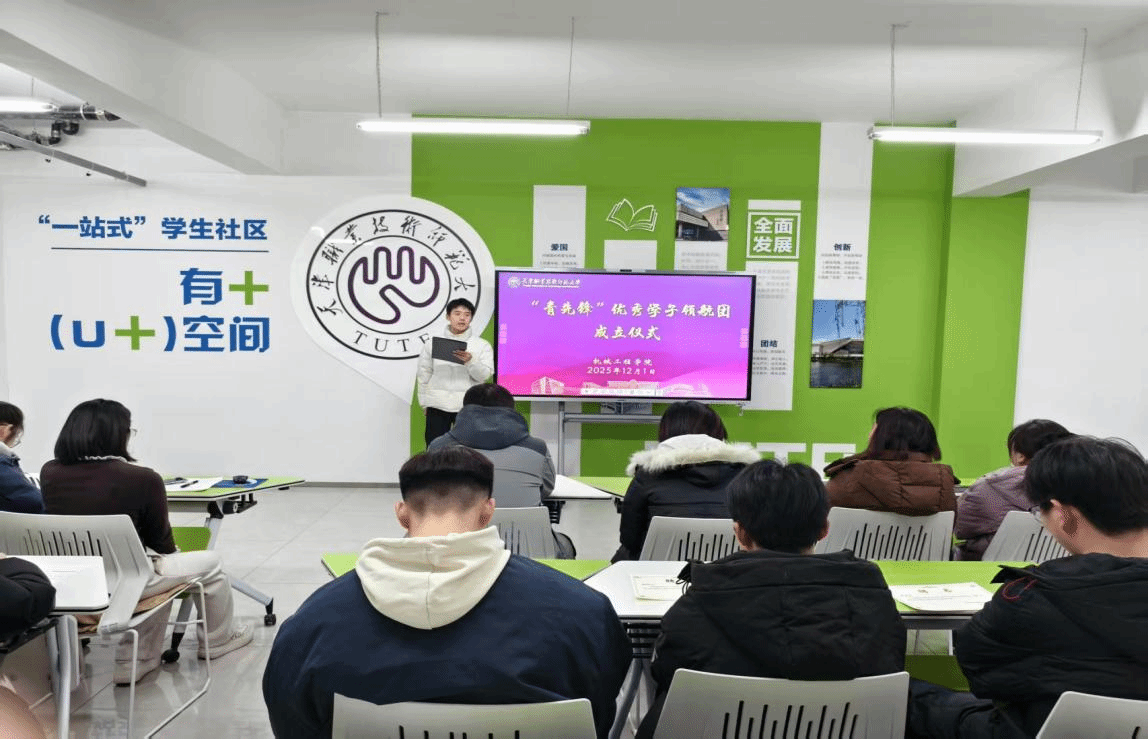 本网讯【通讯员 庞莎莎】为进一步发挥优秀学子示范引领作用,构建精准化朋辈成长体系,12月1日,机械工程学院在东区U+空间举行“青先锋”优秀学子领航团(以下简称“领航团”)成立仪式。学院党委副书记刘娜,2025级新生辅导员范耘硕、袁梦、任畅及新生班级班长共同参加。