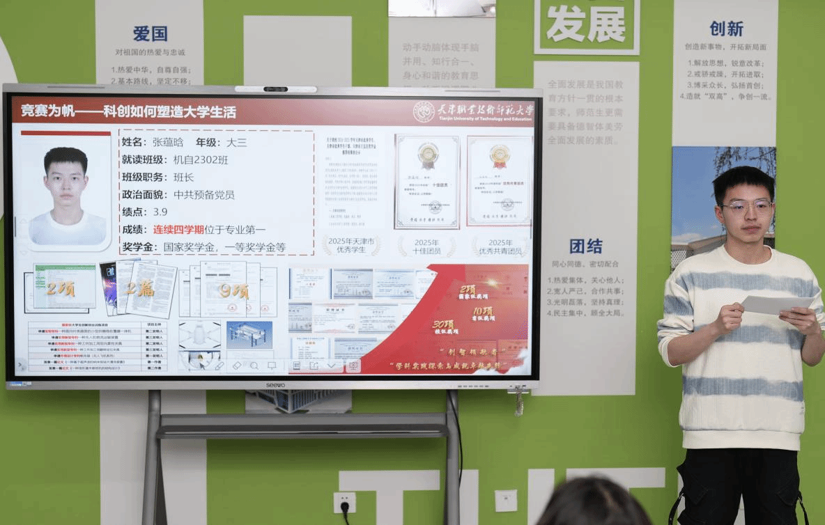 在展示环节,领航团成员依次进行自我介绍,分享学习体会、成长经验和个人特长。他们以真实的故事和坚定的奋斗精神,展现了机械学子积极向上、砥砺奋进的青春风貌,为现场新生带来了深刻的启发与激励。在交流环节,新生代表罗青松表示,将以学长学姐为榜样,充分利用领航团资源,努力提升自身能力,带动同学们共同进步,为国家和社会的发展贡献青春力量。