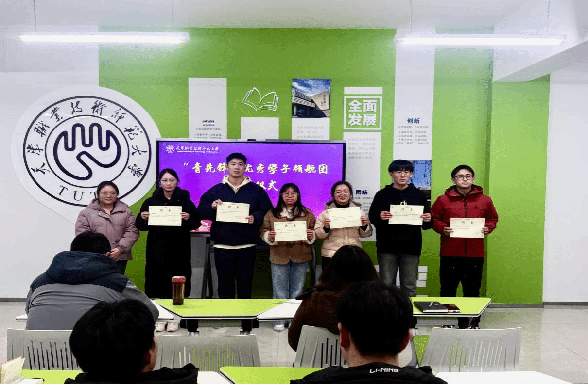 接下来,仪式进入授聘环节。学院正式宣布“青先锋”优秀学子领航团成立,并为18 名入选成员颁发聘书。据悉,这18名成员均在国家奖学金、天津市人民政府奖学金、天津市优秀学生、优秀学生干部等重要评选中脱颖而出,是学院在学习成绩、综合能力与责任担当方面的标杆代表,具备丰富的学业指导、竞赛实践和成长规划经验。