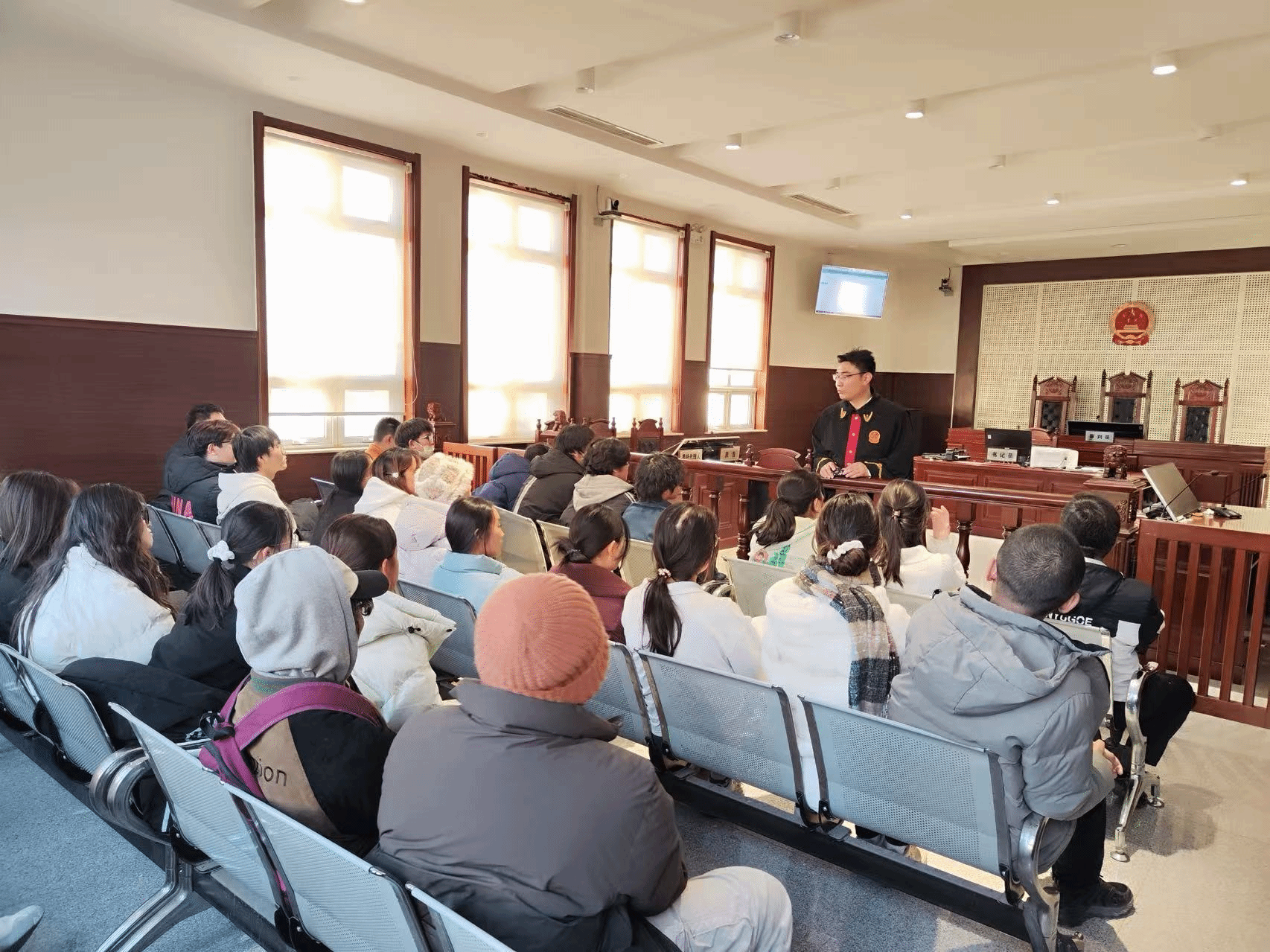 本网讯【通讯员 由丹丹 郑安定】12月2日下午,我校马克思主义学院党总支书记佟艳、院长张葆春带领9位思政课教师及40名学生赴天津市津南区人民法院双港人民法庭,开展以“筑牢信仰之基·弘扬宪法精神”为主题的实践教学活动。此次活动通过庭审观摩与互动交流相结合的形式,实现了宪法宣传与思政课教学的深度融合,是推进习近平法治思想进教材、进课堂、进头脑的重要实践。