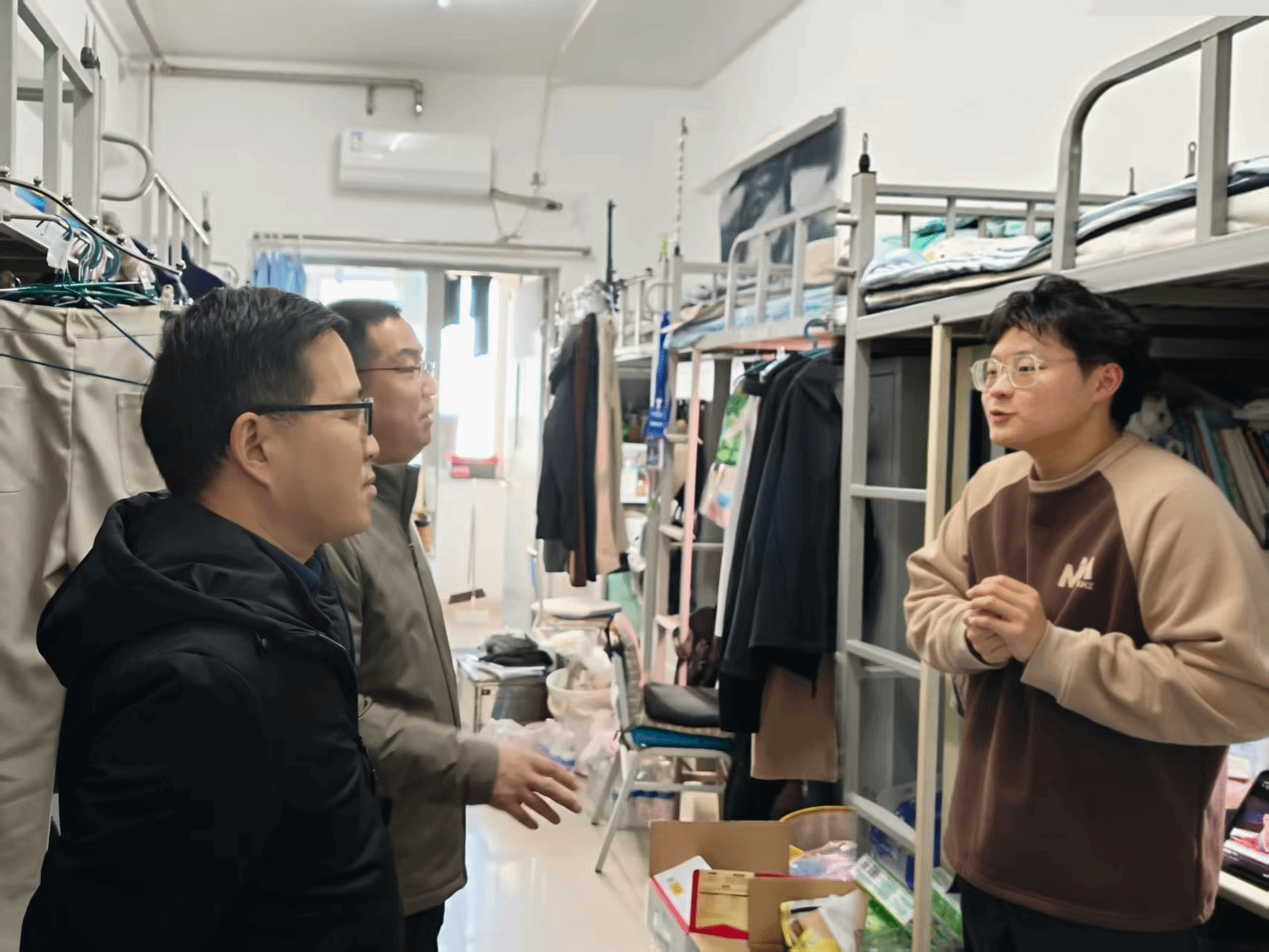 学院领导走进毕业生宿舍,与他们亲切交流,询问防寒保暖、身心健康、就业准备、考研备考等情况,提出针对性建议。韩树明细致询问了同学们的近况,结合冬季特点,叮嘱同学们要高度重视宿舍消防安全,注意防范冬季流感。他耐心倾听部分同学遇到的就业困惑与压力,勉励大家积极转变就业观念,拓宽选择路径。鼓励已经签约的同学未来在工作岗位上爱岗敬业、精益求精、敢于创新,展现天职师大学子的风采,实现个人价值,做好用人单位和学院沟通合作的纽带。