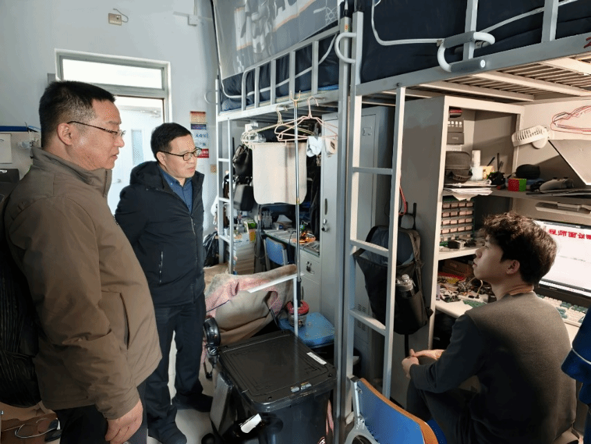 本网讯【通讯员 吴婧怡】12月4日,电子工程学院党委书记韩树明、院长李士心及相关辅导员一行,深入学生宿舍13号楼,开展暖心慰问走访活动。