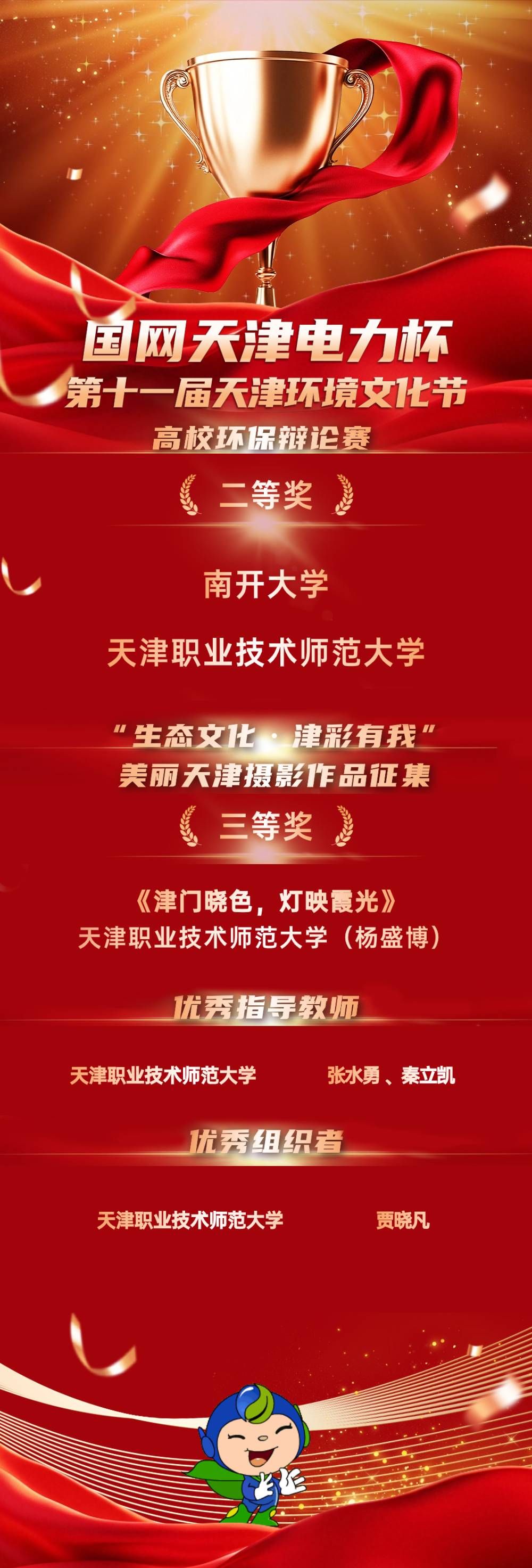 本网讯【通讯员 贾晓凡】12月11日,由市生态环境局、市教育委员会、市科学技术协会联合主办的国网天津电力杯第十一届天津环境文化节结果公布,我校共斩获高校环保辩论赛二等奖、摄影作品征集三等奖、优秀指导教师、优秀组织者四项荣誉,捷报频传彰显我校生态环保教育与校园文化建设的丰硕成果。