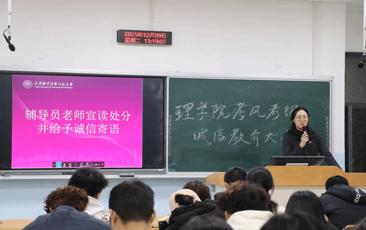 本网讯【通讯员 翟雨润】为强化学风建设、严肃考试纪律,保障四六级考试及期末考试顺利开展,12月9日,理学院在第二教学楼105教室召开考风考纪教育大会。学院党委副书记戚霄、辅导员翟雨润及全体学生干部参会。