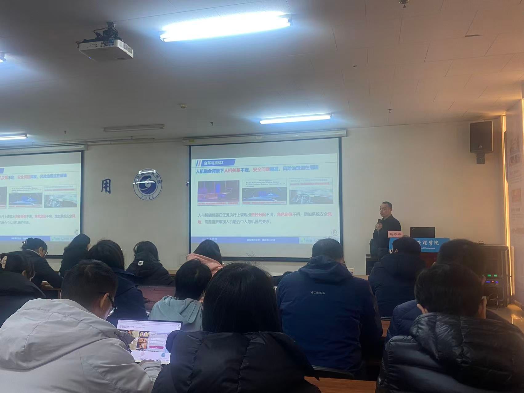 在讲座中,马寿峰教授对人机融合复杂系统这一前沿领域展开深入剖析。他立足认知科学、行为科学等多学科交叉视角,结合人工智能实际应用案例,详细阐释了智能主体在复杂环境中的自主决策、学习适应与协同交互等核心特性。他借助系统科学的方法,进一步解析了系统的演进规律,从微观个体行为推及宏观系统涌现,多角度揭示了系统在不同条件下的动态演化机制。在探讨风险管理关键策略时,他结合人机融合复杂系统的内在特性,提出了一系列兼具创新性与实用价值的风险评估及应对方法。