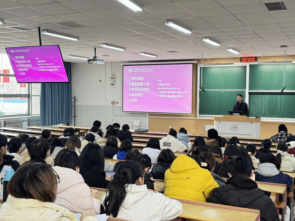 据悉,学院已于12月10日面向全体2026届毕业生召开就业动员会。赵庆全在会上鼓励学生树立“先就业再择业”的务实理念,主动拓宽求职渠道,积极寻求专业指导。毕业班辅导员矫海燕就签约流程、毕业去向类型以及征兵、西部计划等政策进行了详细讲解,帮助学生明确方向、熟悉流程。