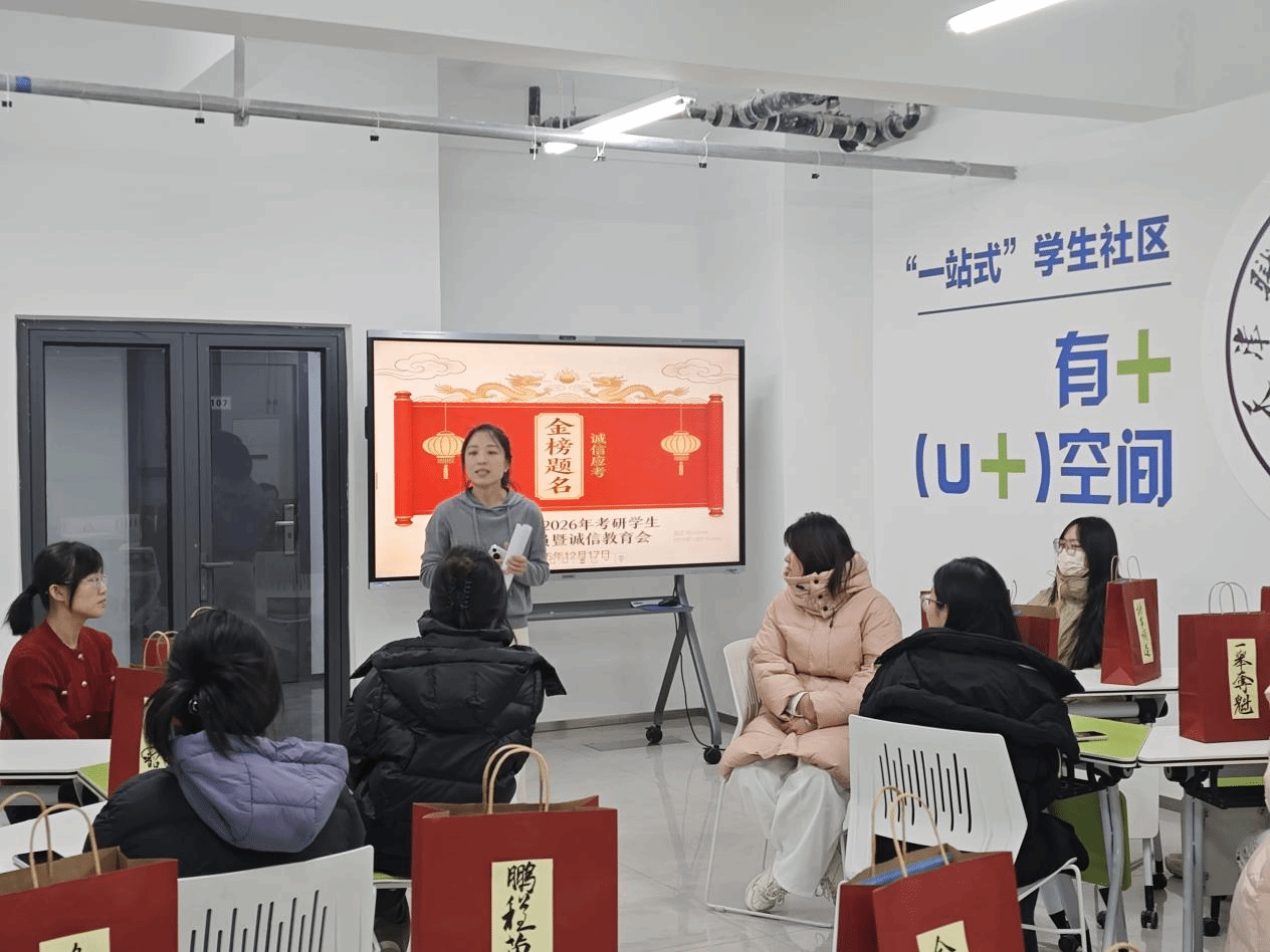 多元举措助升学。为满足毕业生多元化升学需求,11月上旬,学院精准对接优质教育资源,先后邀请新东方资深留学规划教师与海文考研专业指导老师开展专场讲座,结合艺术类学生升学需求,提供个性化规划建议。12月 17日,学院组织开展“研途护航”考前慰问动员活动,学院领导、辅导员及专业教师深入“一站式”学生社区和学生宿舍,与学生亲切交流,并为学生送上“专属加油包”,为备考学生送去温暖与鼓励。