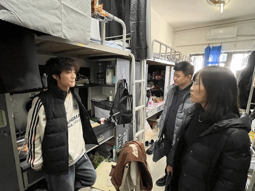 安全检查之余,更是一次温暖的“家访”。老师们与同学进行了亲切交流,细致询问了大家的学习进度、生活状况以及假期安排,并就冬季防寒保暖、假期安全、期末压力调节等问题进行了指导与疏导,鼓励大家在新的一年坚定理想、勤奋笃行、“艺”路生花。
