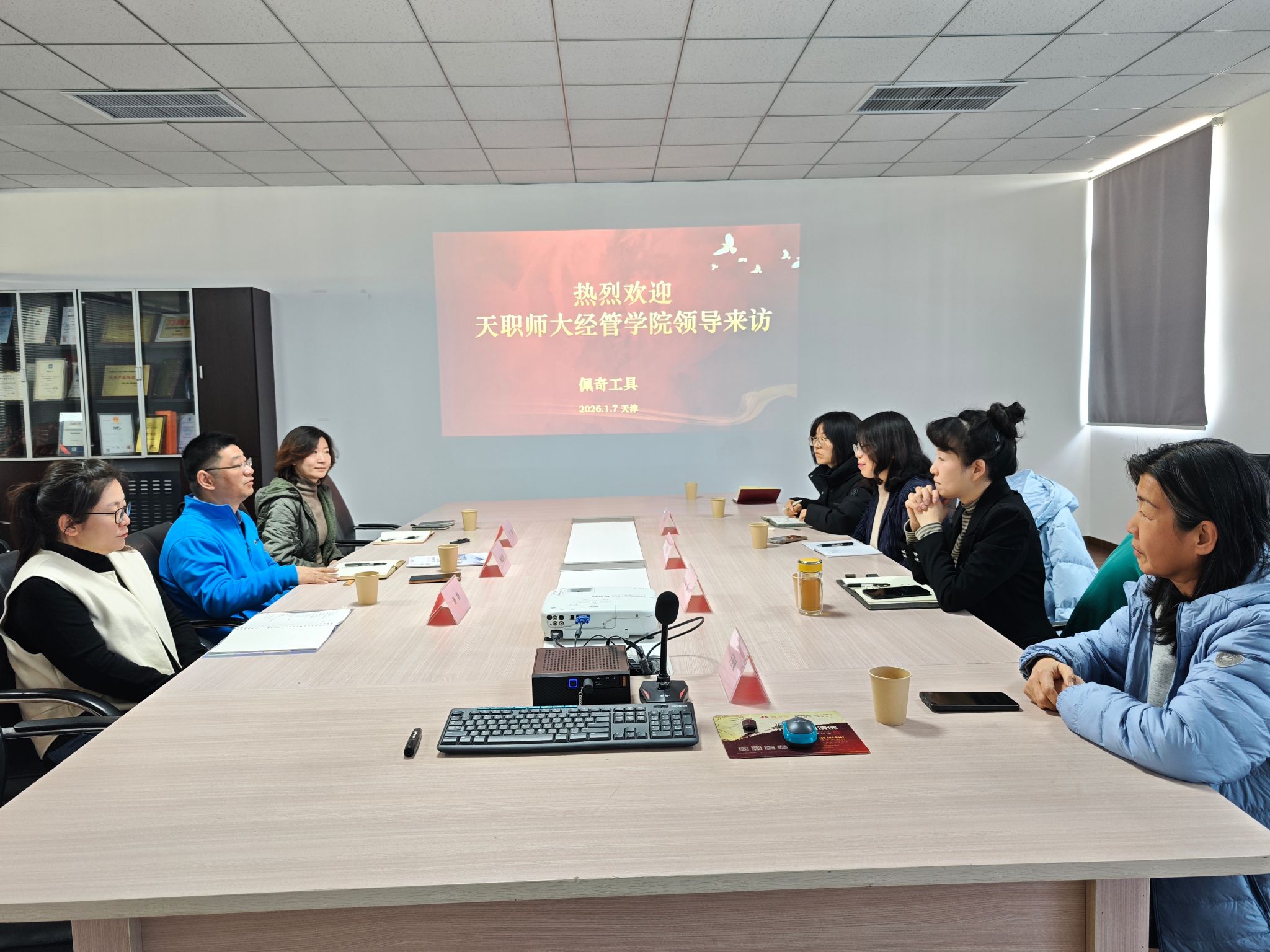本网讯【通讯员 殷天皓】为精准对接行业需求,拓宽校企合作渠道,助力学生高质量就业,1月7日,经济与管理学院党委书记刘晶、院长齐莉丽、副书记郭丽芳、副处级组织员王爱敏、就业辅导员殷天皓一行前往天津市工具制造行业协会会长单位——恩盛德(天津)精密工具制造有限公司开展访企拓岗与合作交流活动。