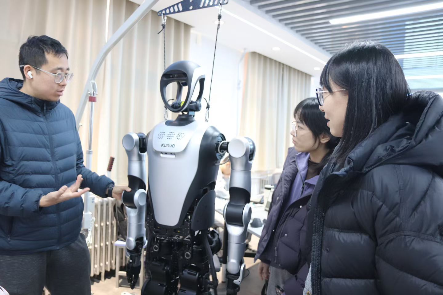 本次训练营为期三天,特邀乐聚通研(北京)机器人技术有限公司、天津启诚伟业科技有限公司的资深工程师担任主讲,采用“理论讲解+实操演练+考核验收”的模式开展。培训期间,课程安排紧凑有序、重点突出。授课专家围绕人形机器人产教融合典型案例、小型双足人形机器人(具身智能版本)核心特性展开系统讲解,并指导学员开展小型双足人形机器人软件平台调用训练,实现理论与实践的快速衔接;聚焦赛事备战与技术深化,详细拆解主流大赛赛制、梳理备赛难点及应对策略,深入解读具身智能Kuavo人形机器人技术体系,并同步指导学员优化教学实践方案与竞赛设计思路;聚焦Kuavo机器人进阶应用技巧,通过手把手教学强化实操能力,并组织全体参训人员参加结业考核,为本次训练营画上圆满句号。