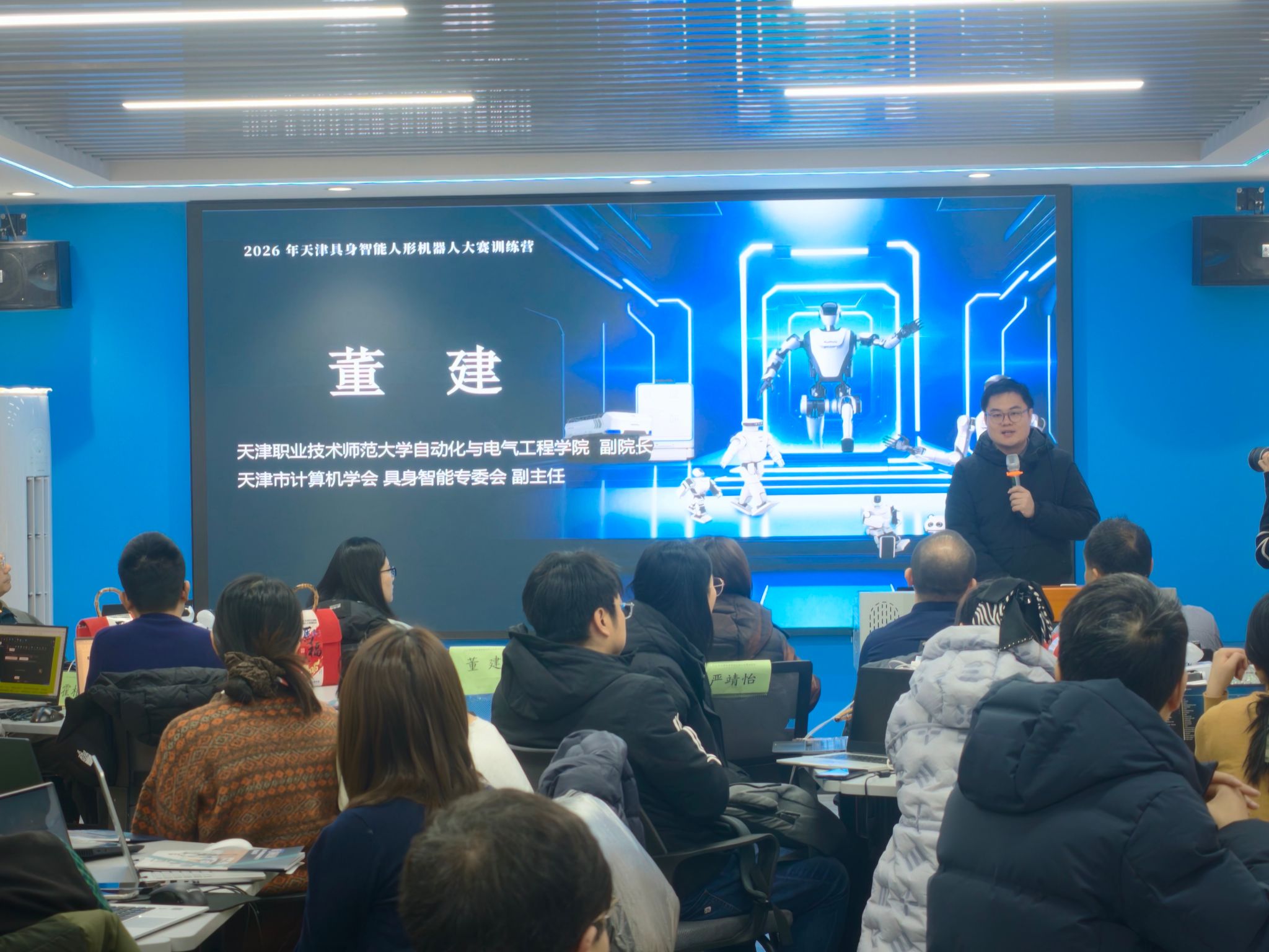 本网讯【通讯员 孙永 王珊】为深化具身智能与机器人领域产教融合,夯实师生核心技术能力,搭建区域教研与赛事交流平台,1月16日至18日,我校自动化与电气工程学院智能控制与机器人现代产业学院联合天津市计算机学会具身智能专委会、天津启诚伟业科技有限公司、天津理工大学AI科教融汇学科交叉创新中心、乐聚通研(北京)机器人技术有限公司等,共同举办2026年天津具身智能人形机器人大赛训练营,吸引了众多高等教育及职业教育领域的师生踊跃参与。
