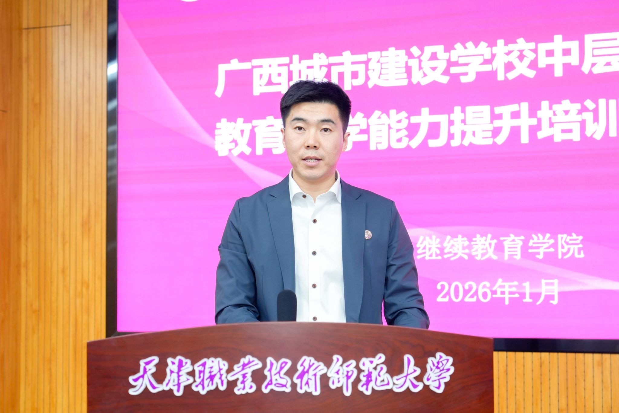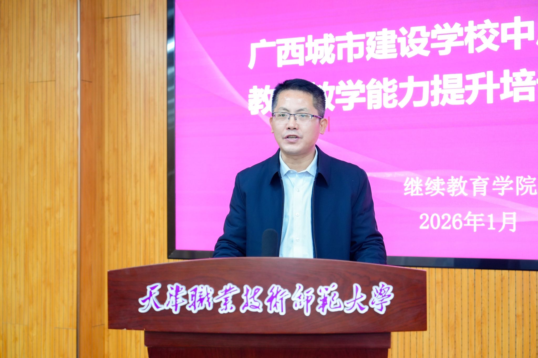 本网讯【通讯员 赵劲凯】1月27日,由继续教育学院举办的“2026年广西城市建设学校中层管理干部教育教学能力提升培训班”在我校正式开班。本次培训旨在扎实推进我校党委赴广西调研成果转化,进一步深化我校与广西两地职业教育协同发展,助力广西城市建设学校加强中层管理干部队伍建设,提升学校治理与教育教学水平。继续教育学院院长张久诗、广西城市建设学校党委副书记、校长曾繁锋出席开班式并致辞。