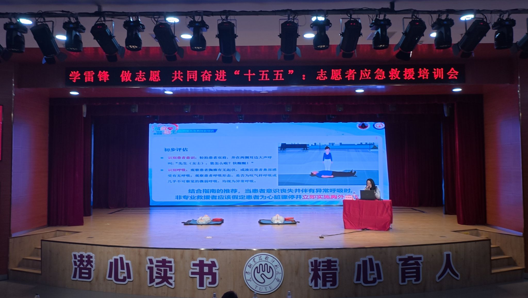 本网讯【通讯员 袁燏】为深入学习贯彻党的二十届四中全会精神,认真贯彻落实习近平总书记关于弘扬雷锋精神的重要论述,深刻把握雷锋精神的时代内涵和实践要求,让学雷锋活动在青少年群体中蔚然成风,3月10日下午,校团委在大学生活动中心展演厅举办“学雷锋 做志愿 共同奋进‘十五五’”志愿者应急救援培训会。