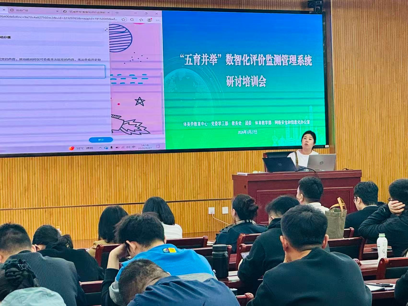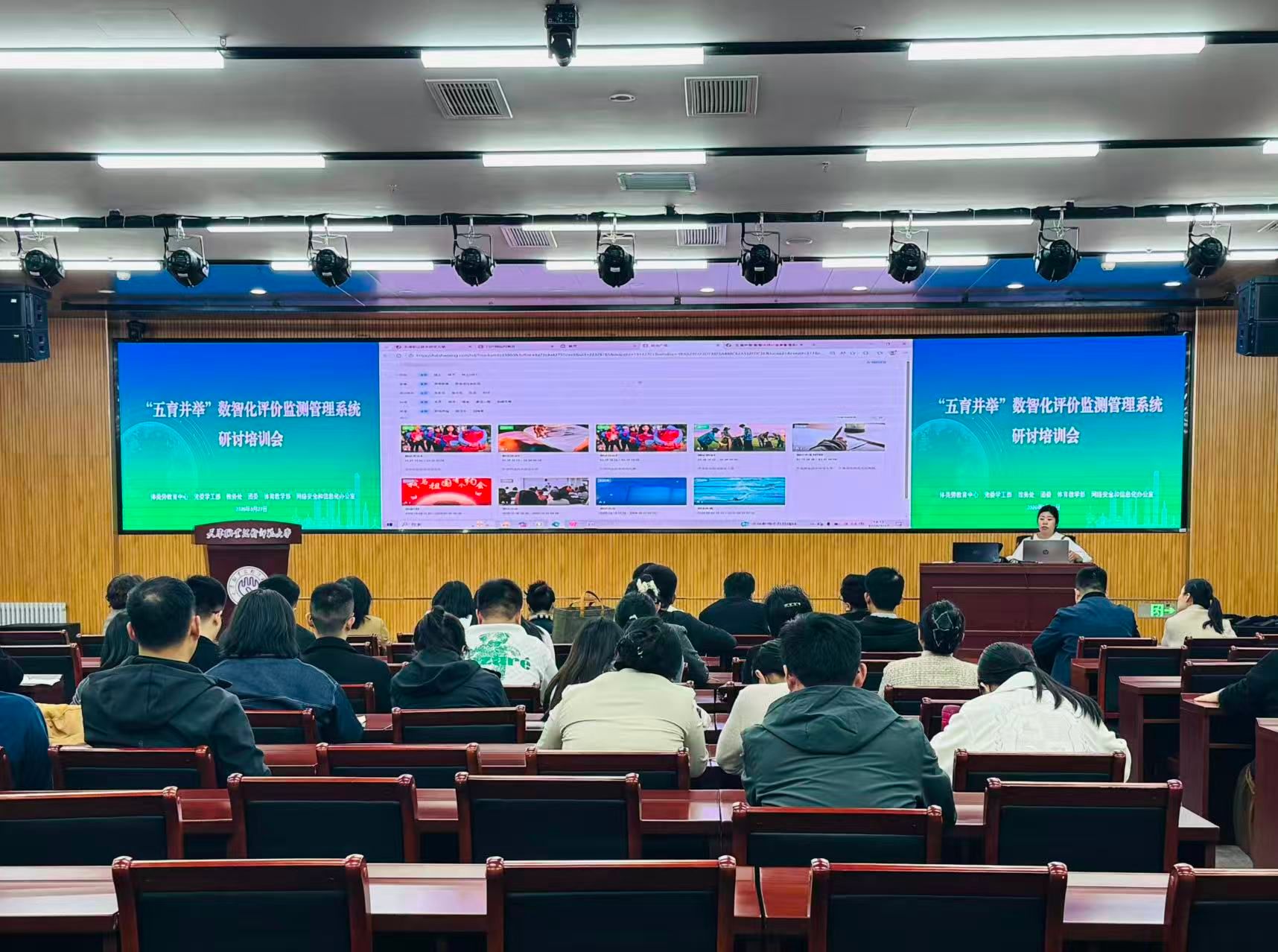 本网讯【通讯员 李伟长 邢骏杰】为深入贯彻立德树人根本任务,有效推进“五育融合”,加快构建科学化、智能化、全覆盖的学生综合素质评价体系,3月27日下午,我校“五育并举”数智化评价监测管理系统研讨培训会在师资培训楼一楼报告厅顺利举行。体美劳教育中心、教务处、学工部、校团委、网信办、体育部负责人,各学院副书记、全体本科辅导员、超星公司技术人员共同参会。会议由体美劳教育中心副主任刘鑫琼主持。