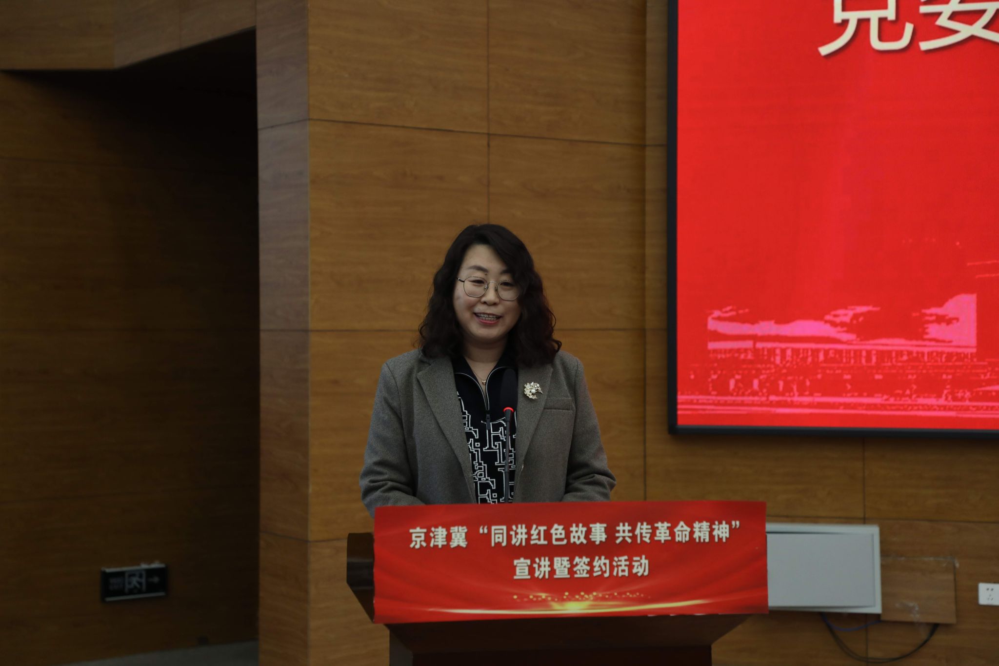 本网讯【通讯员 李彤】为传承红色基因、弘扬革命精神,推动京津冀红色文化传播,3月27日至28日,京津冀“同讲红色故事 共传革命精神”宣讲暨签约活动在阜平举办。中国人民抗日战争纪念馆、我校经济与管理学院、北京商贸学校、北京沃可欣教育科技有限公司等单位与阜平县多方联动,以红色宣讲凝聚力量,以战略合作深化协同育人。经济与管理学院院长齐莉丽、副处级组织员王爱敏、组织员李彤参会。