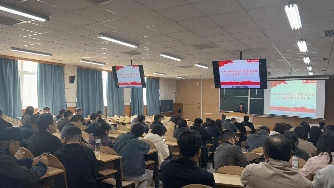 本网讯【通讯员 姚丽华】3月31日,机械工程学院在阶梯教学楼203室召开2026年研究生招生复试工作培训暨纪法警示教育大会,全院近百名教师参加会议。