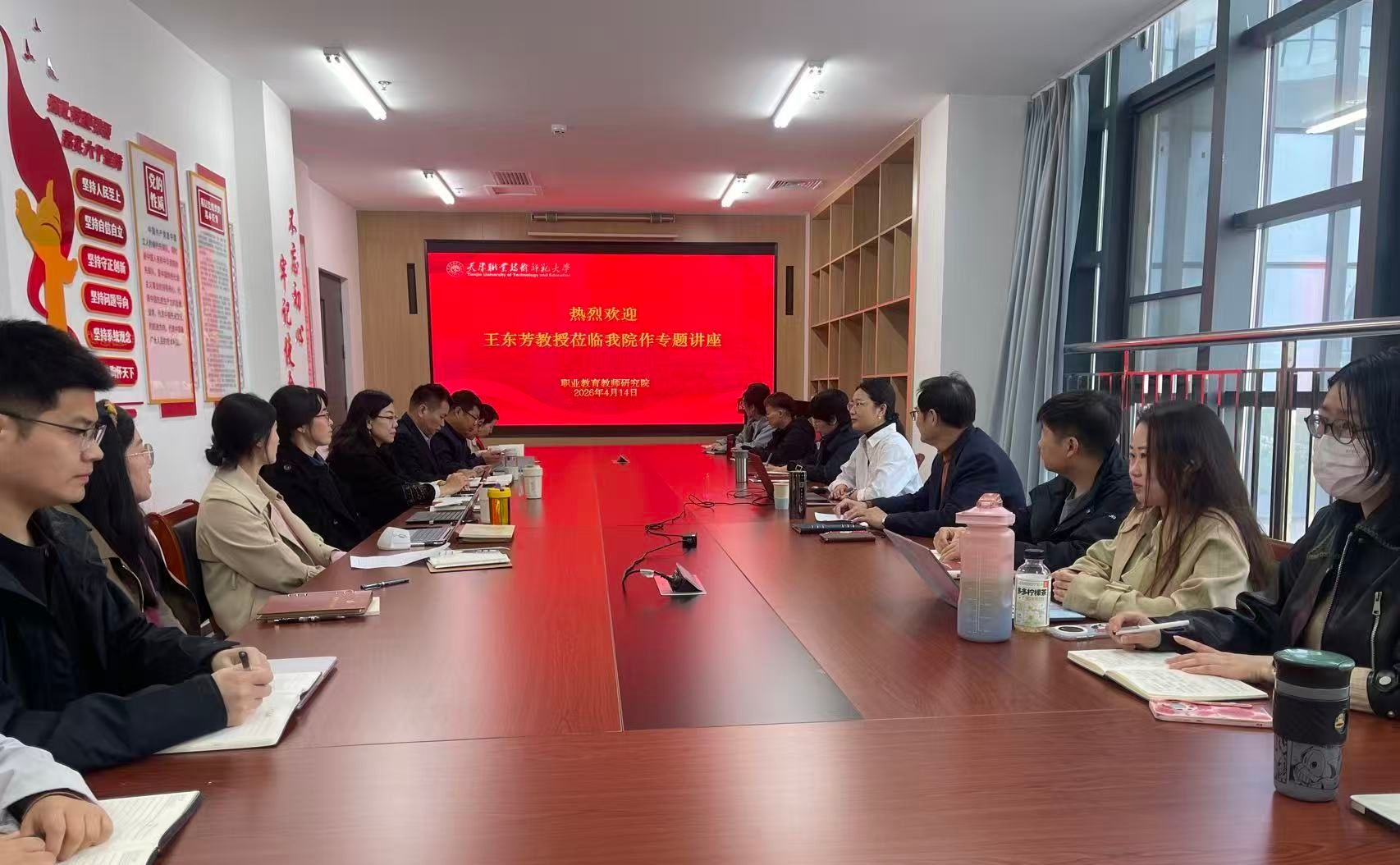 本网讯【通讯员 崔丹】为进一步提升教师科研能力,推动教育科学研究成果转化,4月14日下午,职业教育教师研究院(以下简称“职研院”)特邀国家青年人才、天津师范大学博士生导师王东芳教授作题为“让研究‘落地有声’:从教育科学研究到资政成果转化”的学术讲座。职研院全体科研教师及我校部分硕博士研究生参加。讲座由职研院李梦卿教授主持。