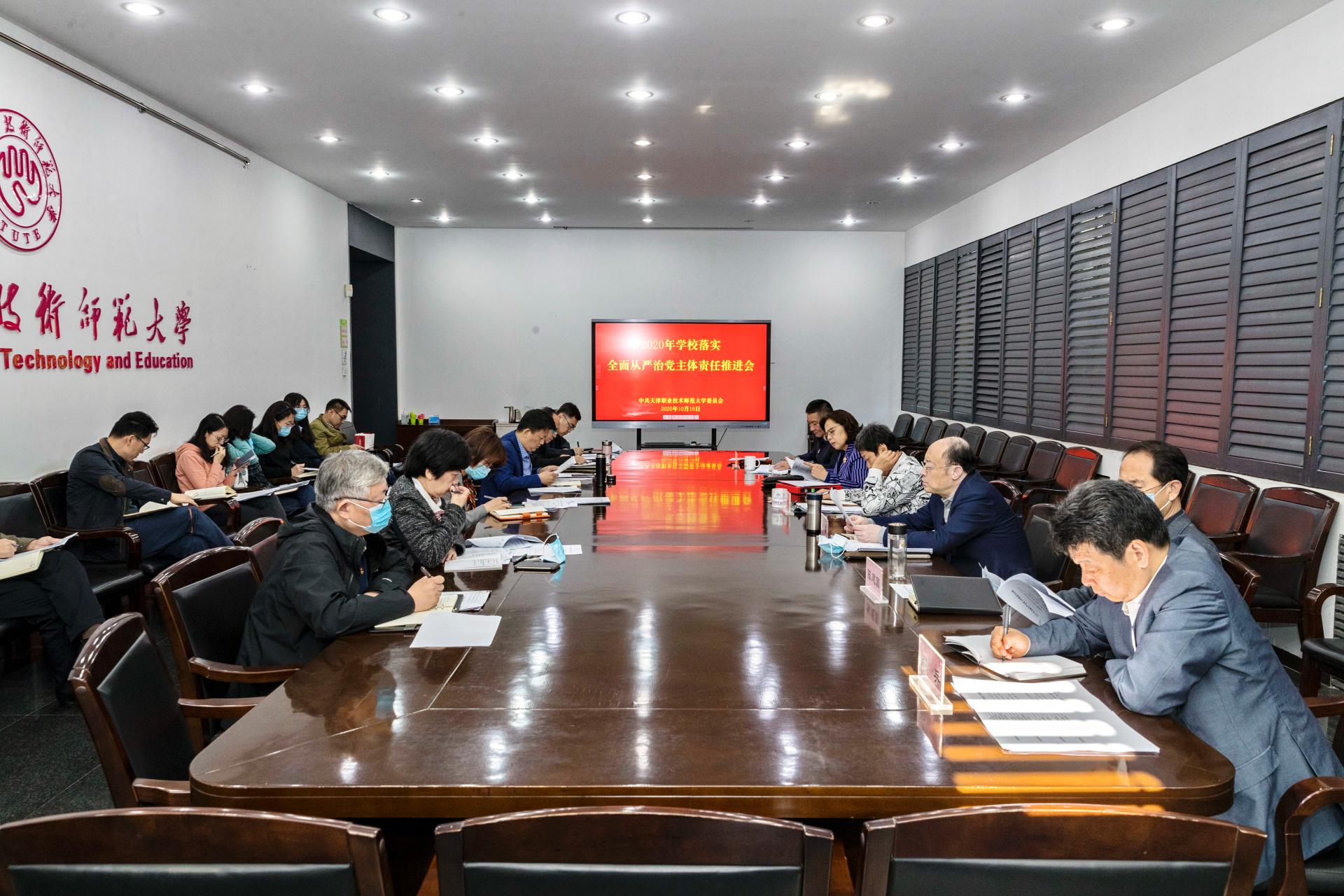 本网讯【通讯员 刘东兴】10月16日,校党委召开2020年落实全面从严治党主体责任推进会,深入贯彻落实中央《党委(党组)落实全面从严治党主体责任规定》和市委、市委教育工委关于落实全面从严治党主体责任检查考核的实施办法,落实全面从严治党主体责任各项任务,推动全面从严治党向纵深发展。校党委副书记、校长刘欣出席并主持会议。校党委副书记马雷,副校长孙奇涵,校党委常委、副校长陈建国、李康、阎兵出席。