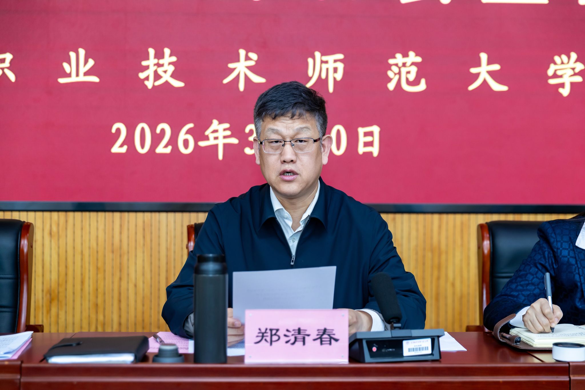 郑清春要求,要聚焦重点,精准发力,确保各项重点任务落地见效。要扎实开展树立和践行正确政绩观学习教育,在深学、真查、实改上下功夫见成效,以教育系统典型案例和身边人、身边事教育警醒自身,教育引导党员干部树立和践行正确政绩观。要坚持以党的政治建设为统领,建好用好中国-上海合作组织职业技术教育合作中心,高质量筹备召开学校第三次党代会,以实际行动把党的领导贯穿学校教育事业改革发展各方面全过程。要抓实铸魂育人,推进“大思政课”建设综合改革,完善思政育人体系。要夯实基层党建根基,深入推进“党建引领 筑基聚力”专项行动,推动党的建设与事业发展“一融双高”,推动事业发展提质增效。要建强干部队伍,优化结构,激发干部队伍内生动力和整体活力。要深入推进群众身边不正之风和腐败问题集中整治,以更高标准、更实举措加力攻坚,让师生更多受益、更加满意。要加强作风建设和基层监督,完善各类监督贯通协调的工作机制。要筑牢安全稳定防线,落实意识形态和安全责任,创建平安校园。
