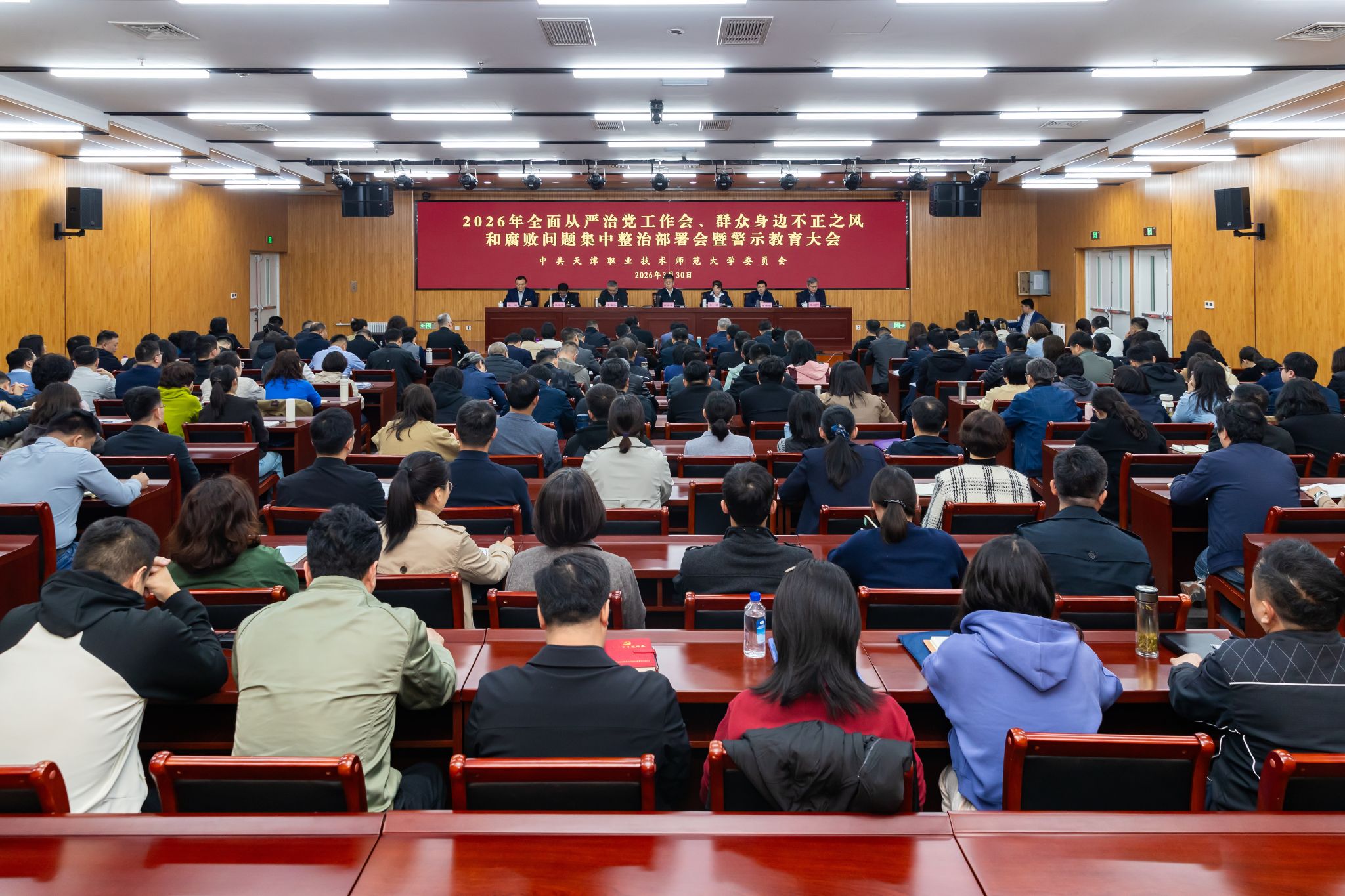 本网讯【通讯员 刘东兴 魏兵】在全党深入开展树立和践行正确政绩观学习教育之际,为深入学习贯彻党的二十大和二十届历次全会精神,深入学习领会二十届中央纪委五次全会精神和十二届市纪委五次全会精神,落实教育部和市教育系统全面从严治党工作会议精神,3月30日下午,学校召开2026年全面从严治党工作会、群众身边不正之风和腐败问题集中整治部署会暨警示教育大会。校党委书记、校长郑清春出席并讲话。校党委常委、副校长李富森,驻校纪检监察组组长余坤明,校党委常委、副校长蔡玉俊,副校长王劲松,校党委常委、副校长米靖出席会议。校党委副书记李靖主持会议。