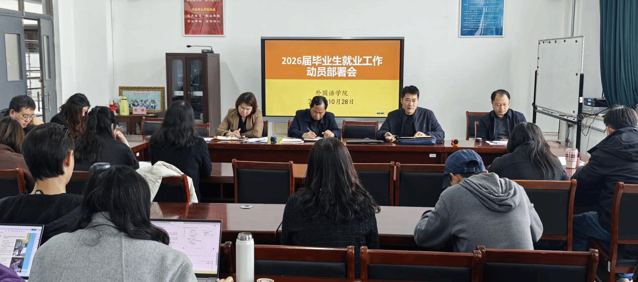 本网讯【通讯员 宋新新】为凝聚共识、压实责任,早谋划、早进入,推进学院2026届毕业生就业工作,10月28日,外国语学院召开2026届毕业生就业工作动员部署会。全体院领导、系主任、毕业班研究生导师、班主任、辅导员参加,会议由院党委副书记李刚主持。会上,毕业....