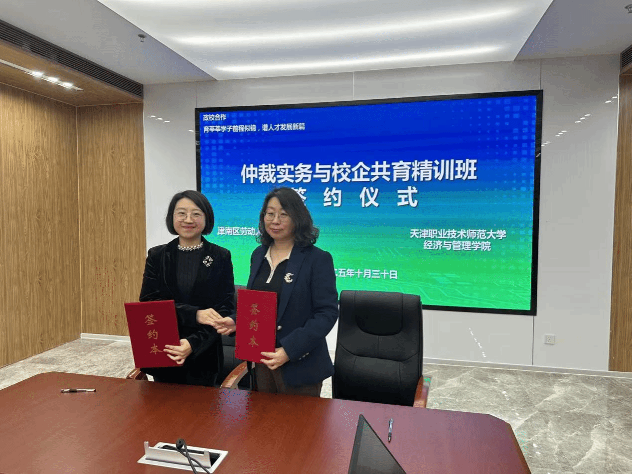 本网讯【通讯员 刘解放】为深化产教融合、推动校地企资源共享与优势互补,10月30日,经济与管理学院和津南区劳动人事争议仲裁院举行签约仪式。津南区人力资源和社会保障局副局长薛春海,津南区劳动人事争议仲裁院院长王洹及仲裁院相关负责人,天津荣程钢铁集团、....
