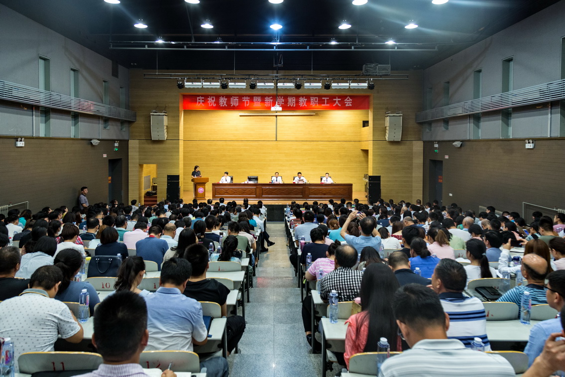 本网讯(通讯员 白燕华)9月9日,我校召开庆祝第35个教师节暨新学期教职工大会。校党委书记张金刚出席并讲话。副校长孙奇涵主持会议。校党委常委、副校长李康,校党委常委、副校长阎兵,校党委常委、纪委书记张志远出席,全校教职工和学生代表400余人参加。张金....