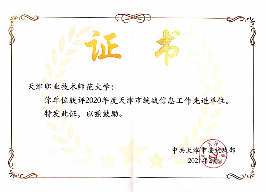 本网讯【通讯员 余瑛】近日,中共天津市委统战部召开全市统战部长会议,对2020年度天津市统战理论政策研究创新成果及信息工作进行表彰。我校获评2020年度天津市统战信息工作先进单位,机械工程学院辅导员滕薇、校团委书记刘晶撰写的《"1+2+3+4"培养模式助推少数....